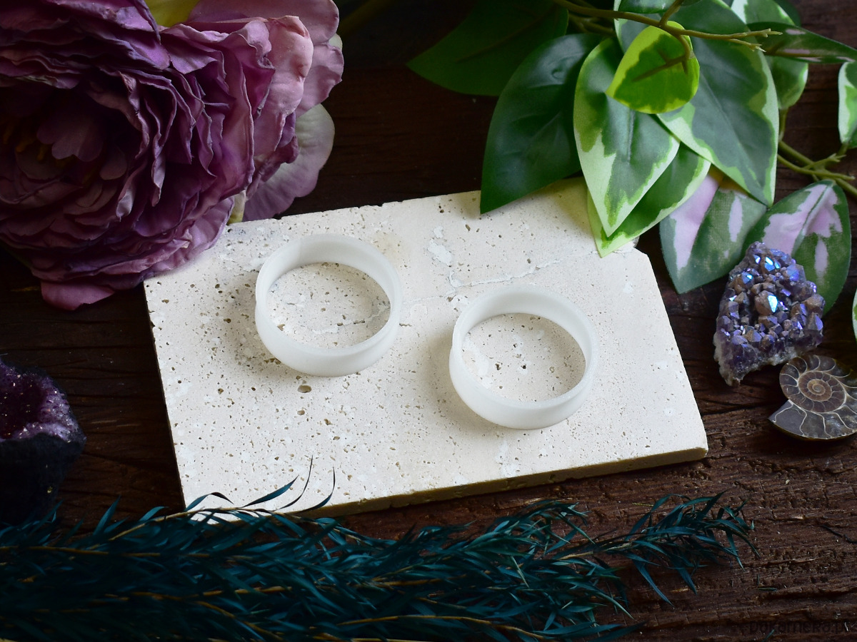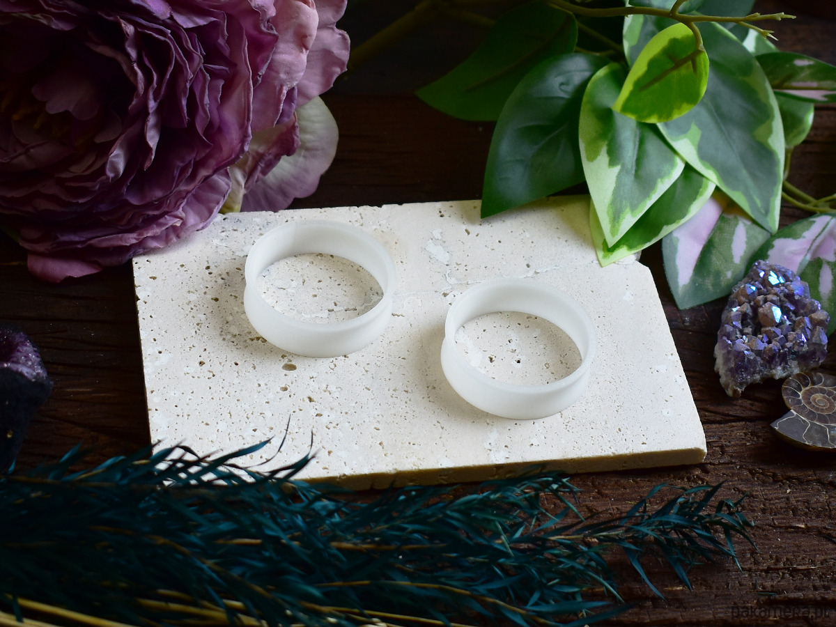 Tunele do uszu 10-100mm / białe mleczne / plugi, tunele siodłowe