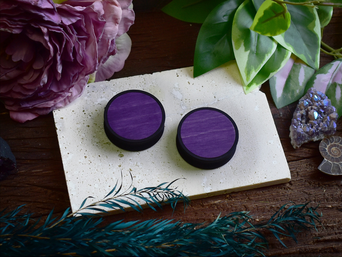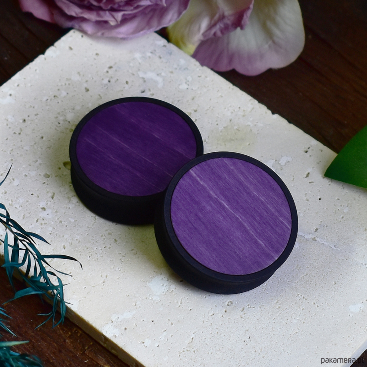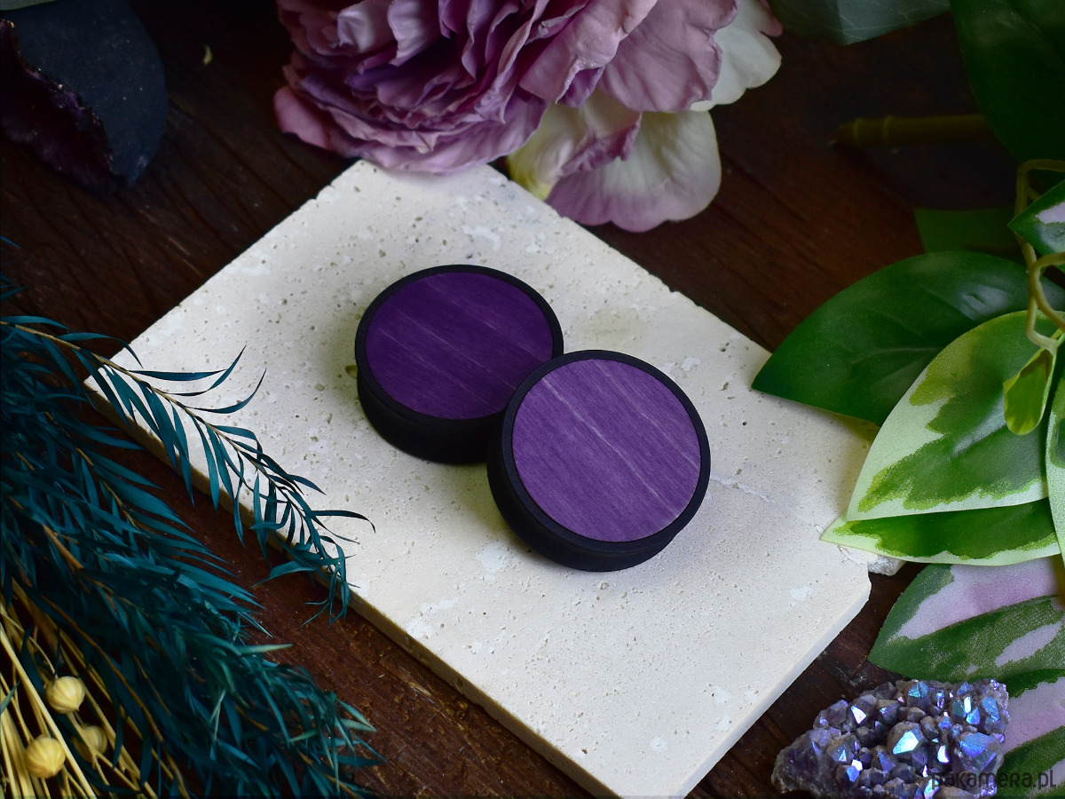Tunele do uszu 10-100mm / wypełnienie z drewna / fioletowe