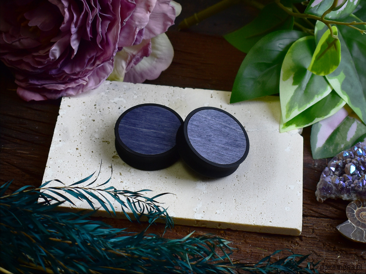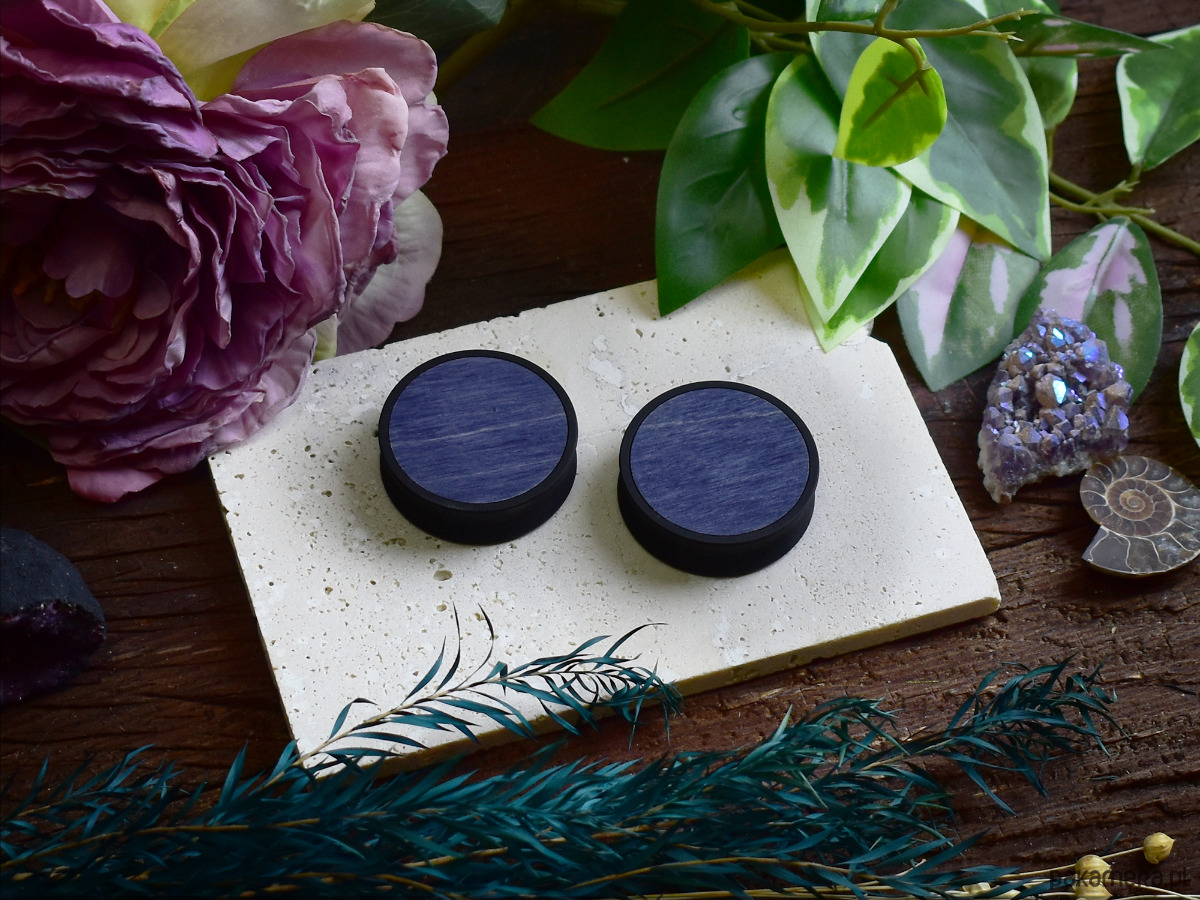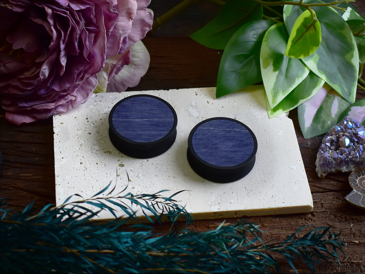 Tunele do uszu 10-100mm / wypełnienie z drewna / granatowe