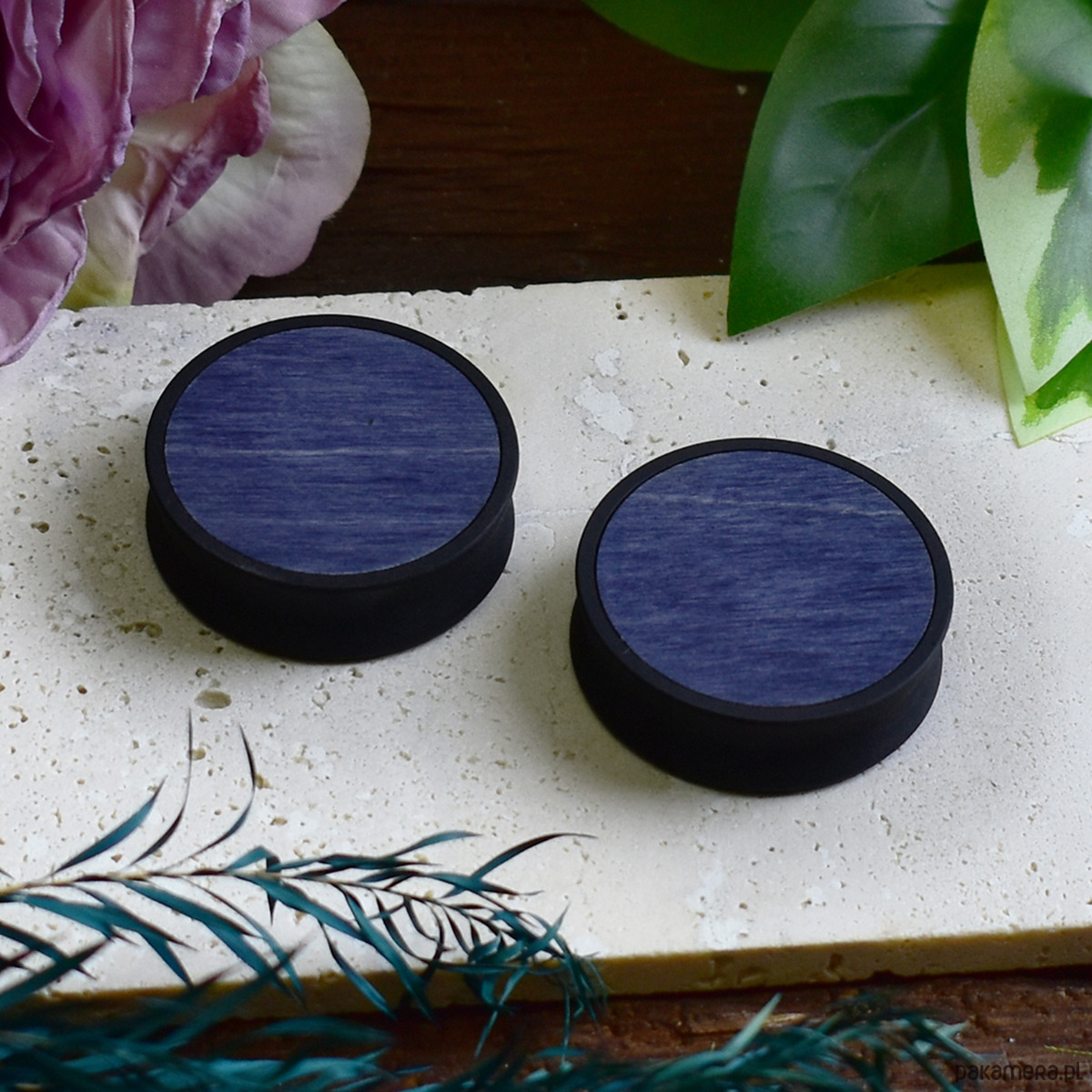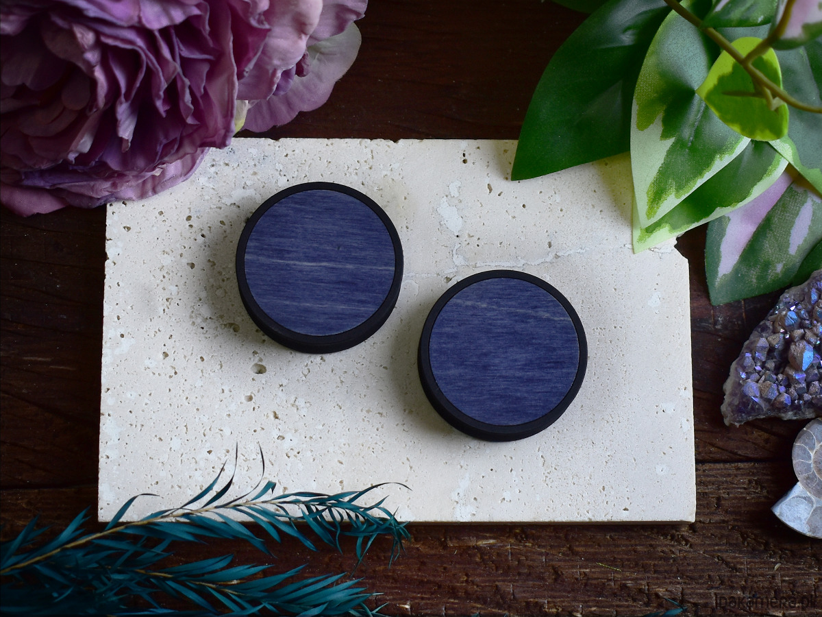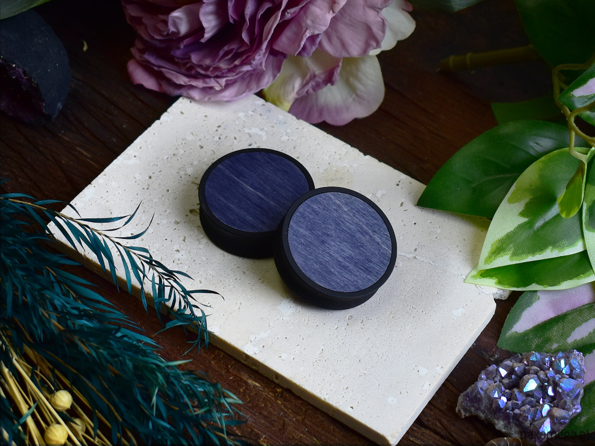 Tunele do uszu 10-100mm / wypełnienie z drewna / granatowe