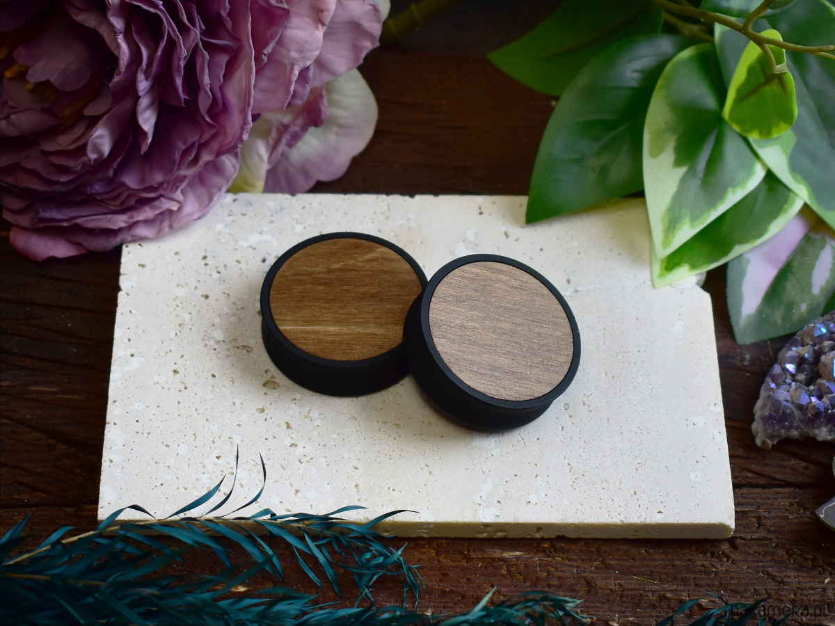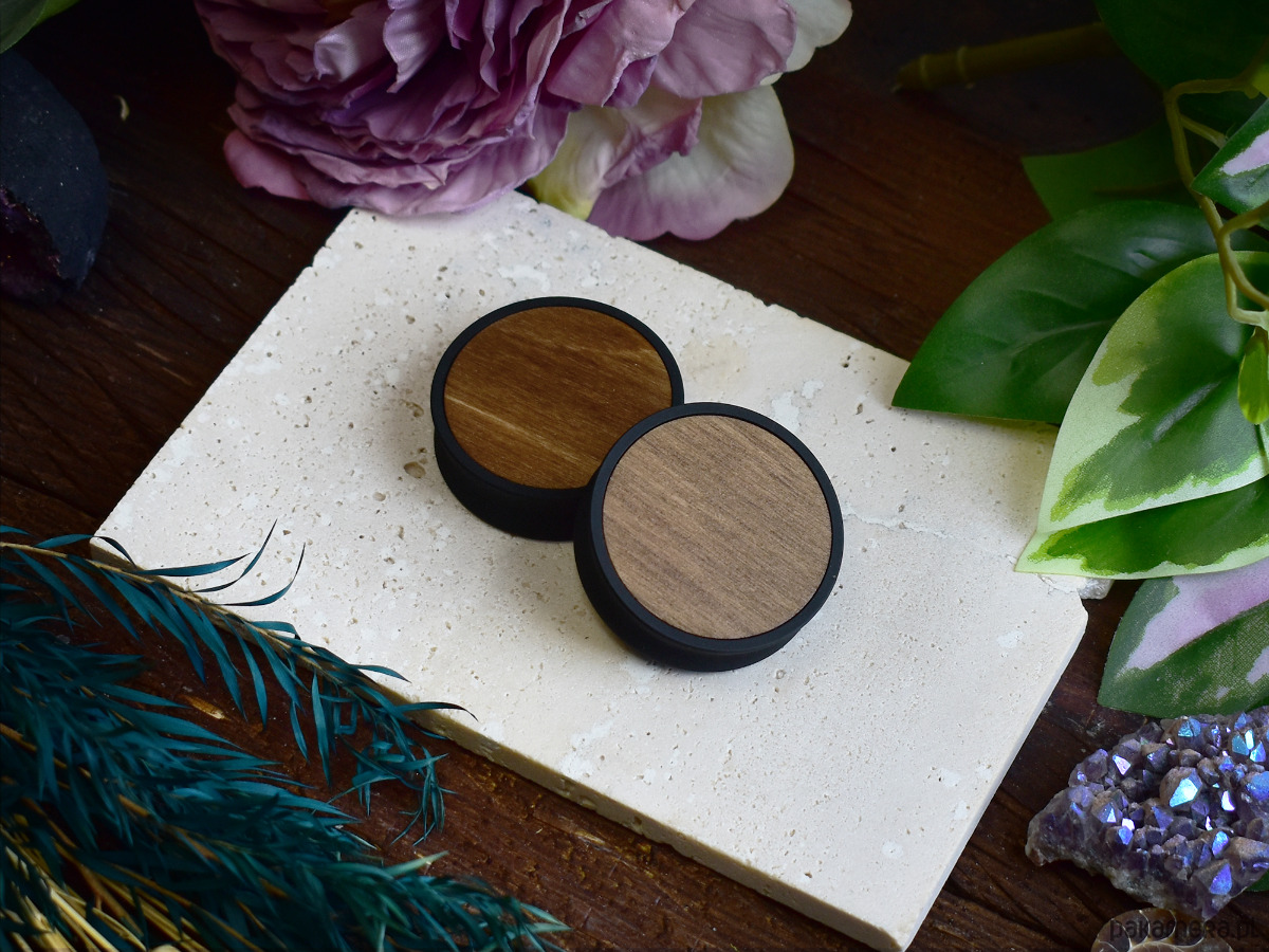 Tunele do uszu 10-100mm / wypełnienie z drewna / jasny orzech