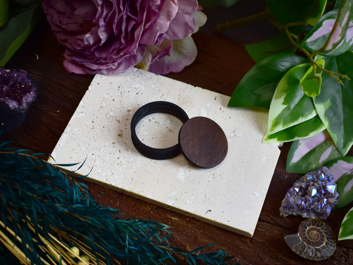 Tunele do uszu wykonane z biokompatybilnej żywicy, drukowane na drukarce 3D. Bardzo lekkie i siodłowe, co sprawia, że nie wypadają z uszu. Idealne dla osób szukających wygodnych rozwiązań do noszenia na co dzień. Tunele posiadają wypełnienie z drewna, barwione bejcą. Tunele są puste w środku, dzięki czemu są bardzo lekkie.
