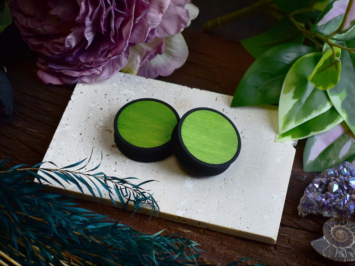 Tunele do uszu 10-100mm / wypełnienie z drewna / limonka