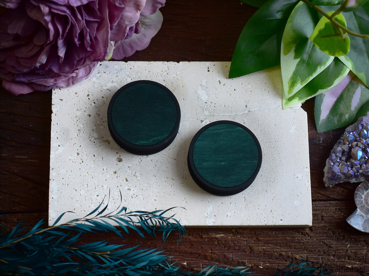 Tunele do uszu 10-100mm / wypełnienie z drewna / morska zieleń