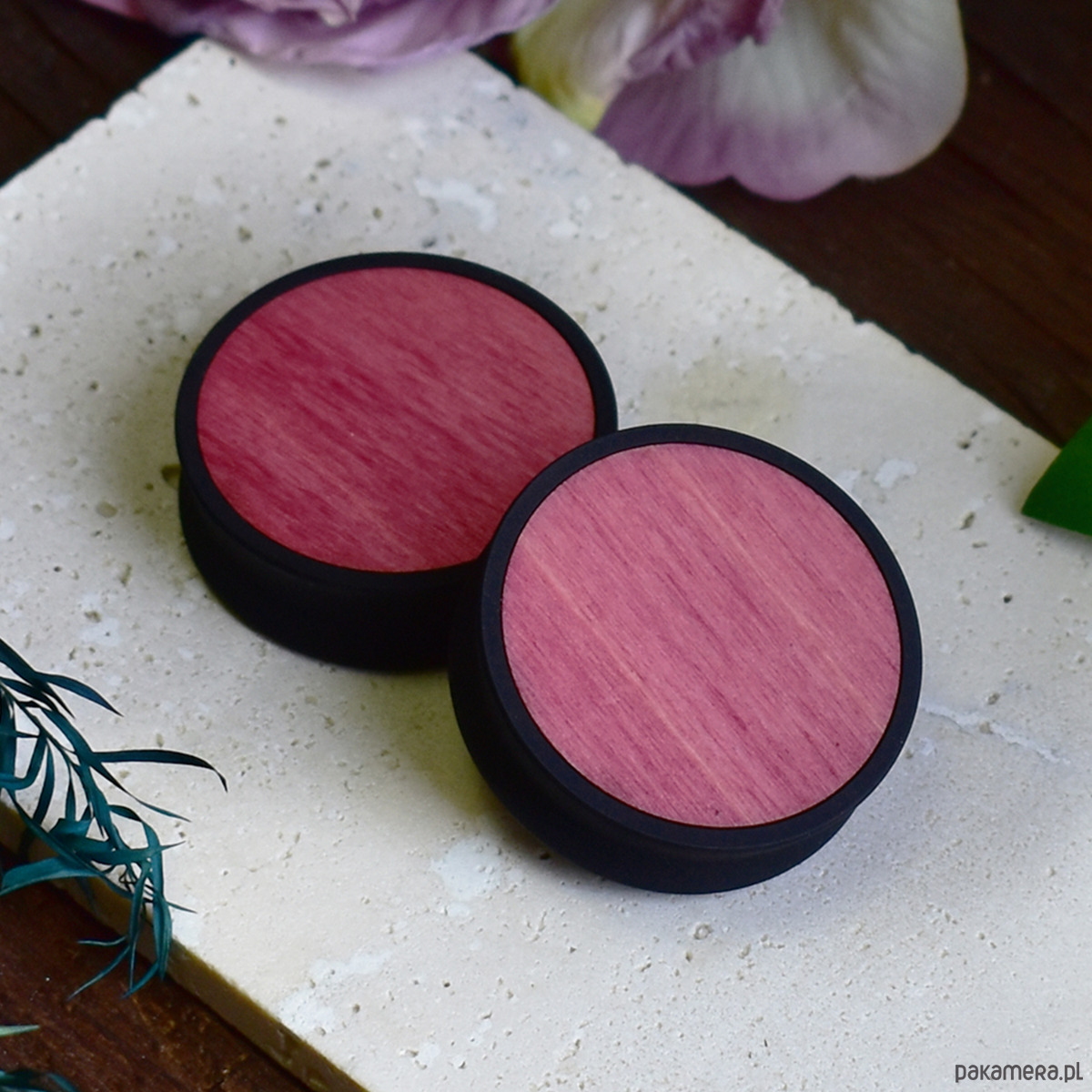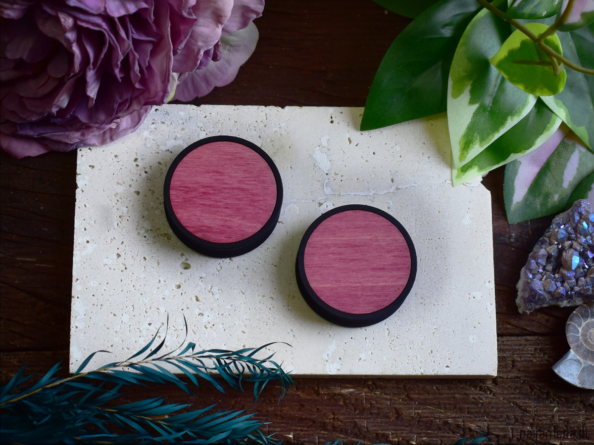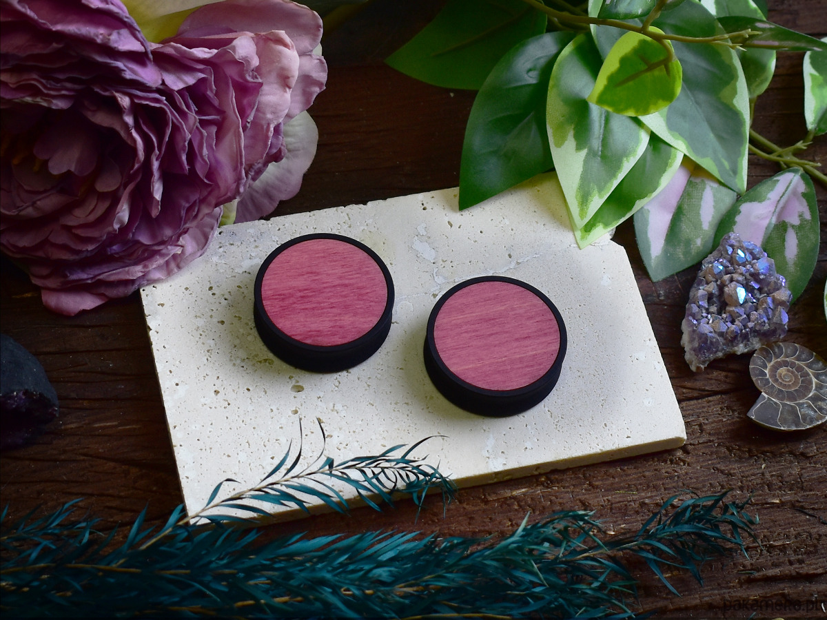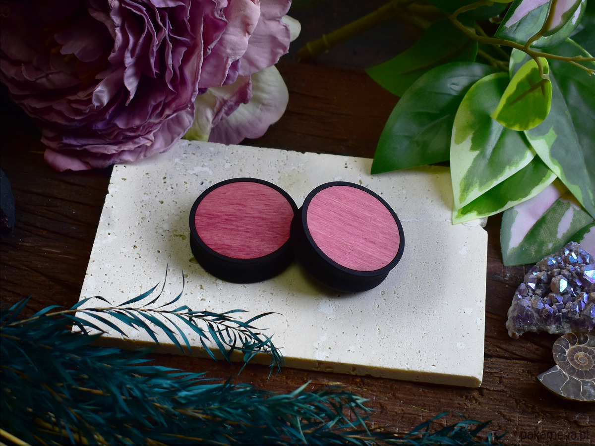 Tunele do uszu 10-100mm / wypełnienie z drewna / różowe