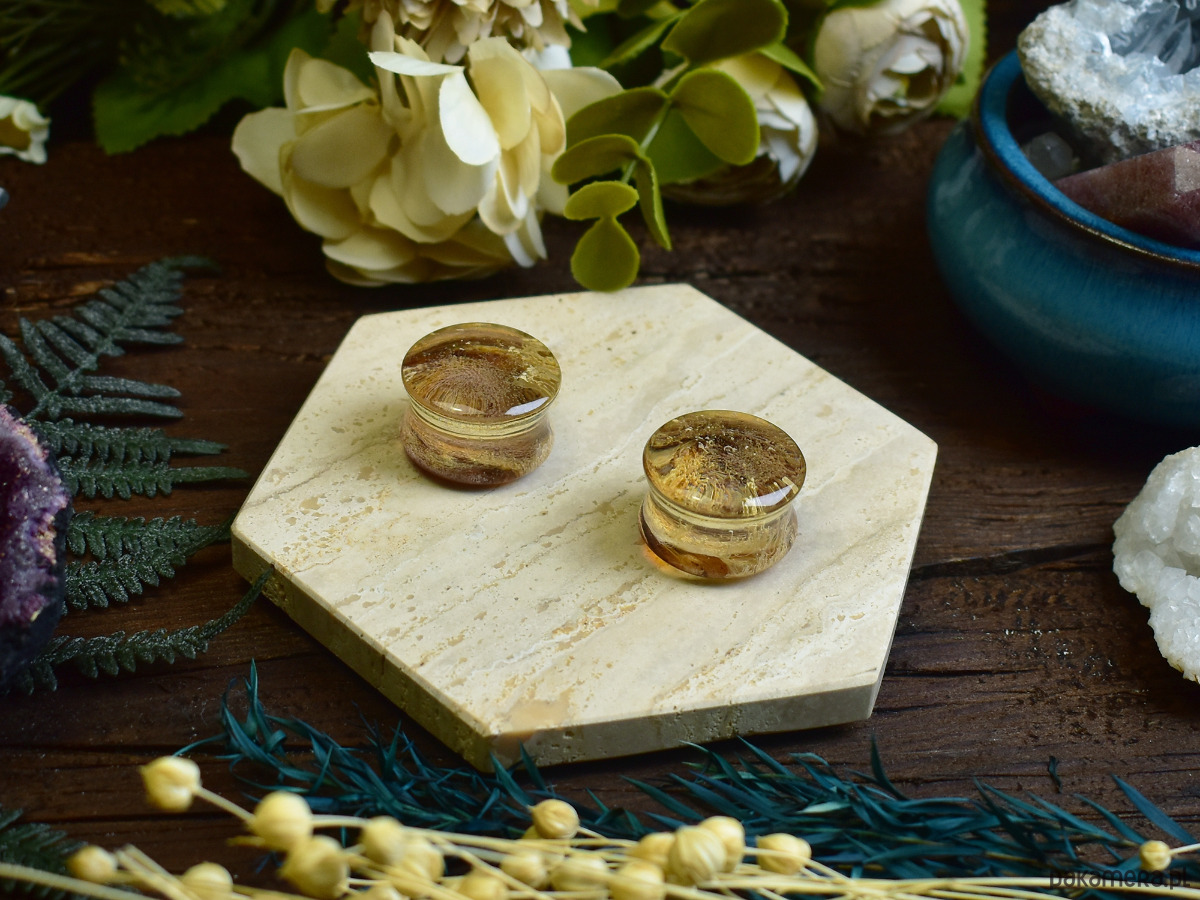 Ręcznie wykonane tunele/plugi siodłowe do uszu. Tunele są wykonane tuszami alkoholowymi przez co każda sztuka jest unikalna.