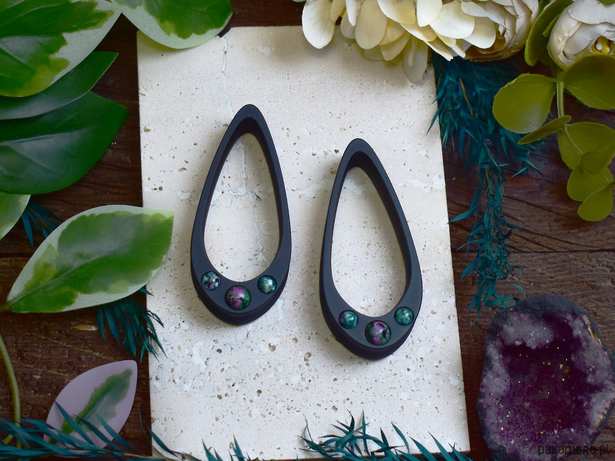 Tunele do uszu 25-100mm / wydłużone łezki z kamieniami / zoisyt z rubinem