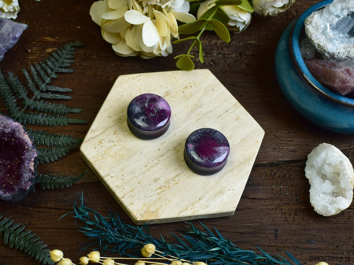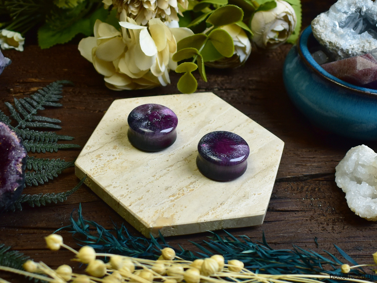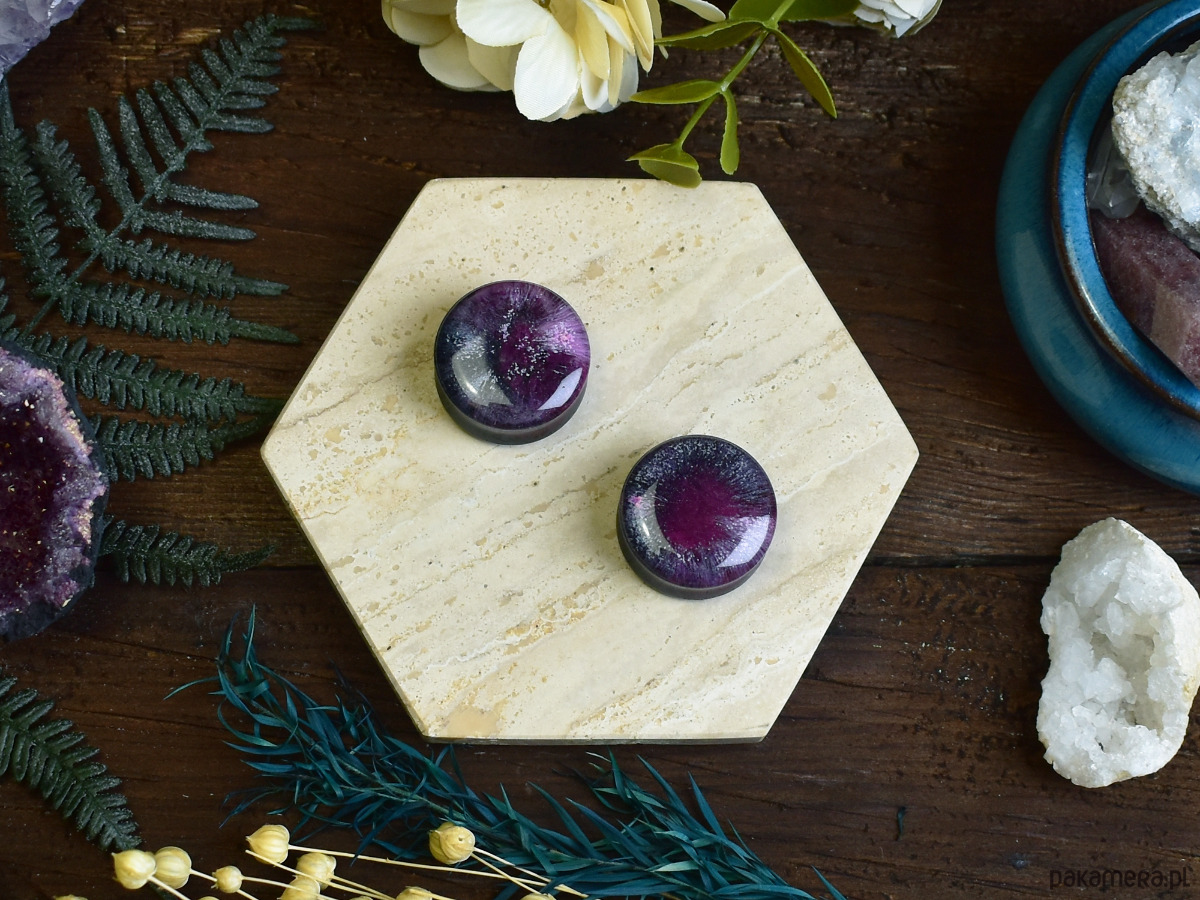 Ręcznie wykonane tunele do uszu z wysokiej jakości żywicy i tuszy alkoholowych, dzięki czemu każda para wyróżnia się niepowtarzalnym, wielobarwnym wzorem. Proces tworzenia sprawia, że każdy egzemplarz jest wyjątkowy, co nadaje im unikalny charakter. Zaleca się noszenie tuneli wyłącznie w wygojonych dziurkach, aby uniknąć podrażnień i zapewnić maksymalny komfort użytkowania.