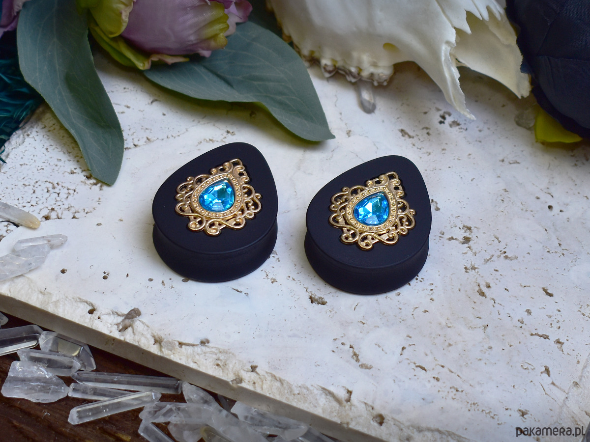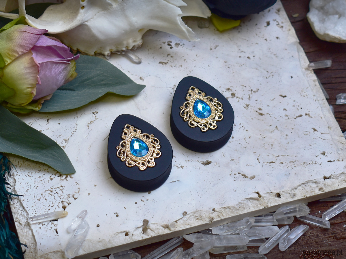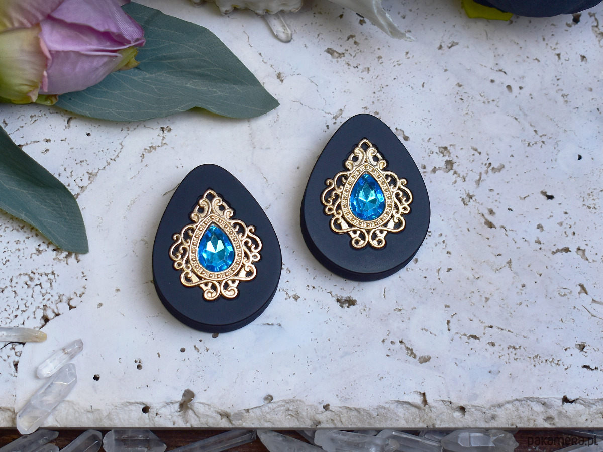 Tunele do uszu 34-60mm / łezki z wiktoriańską ozdobą i kryształkiem