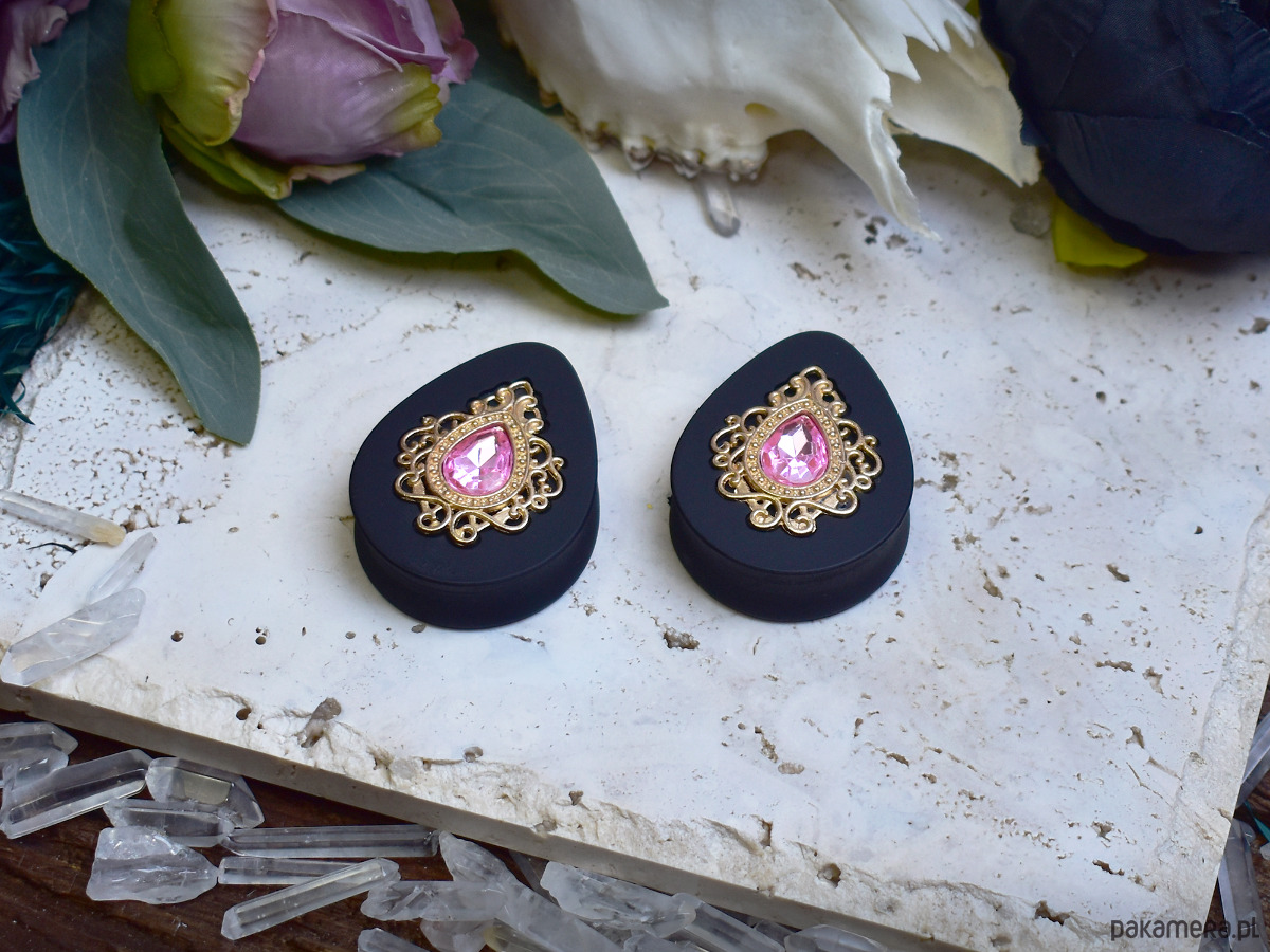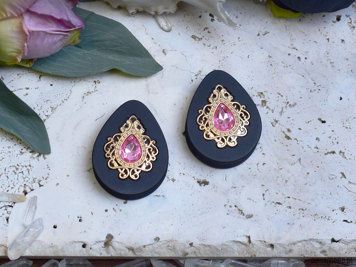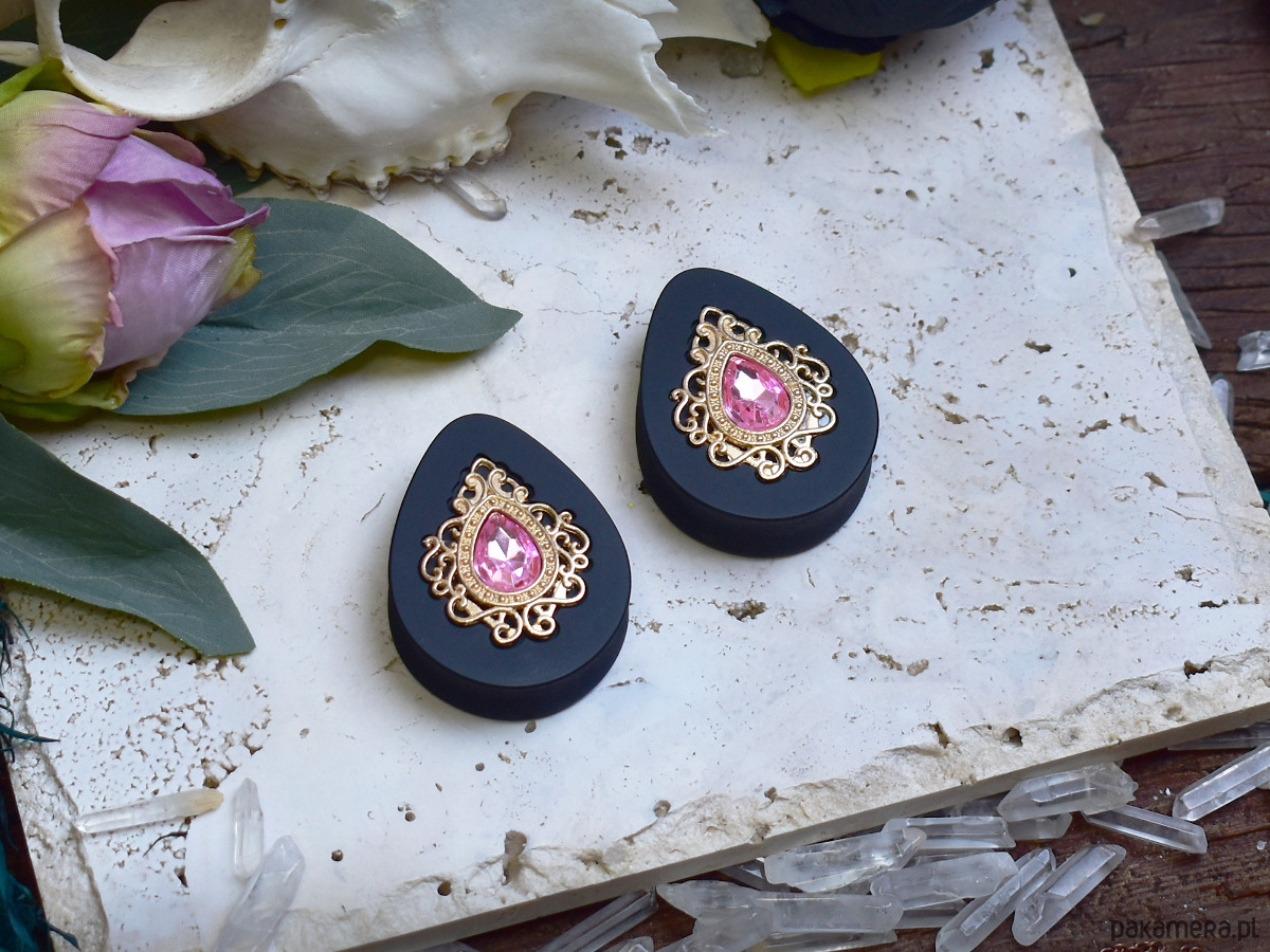 Tunele do uszu 34-60mm / łezki z wiktoriańską ozdobą i kryształkiem
