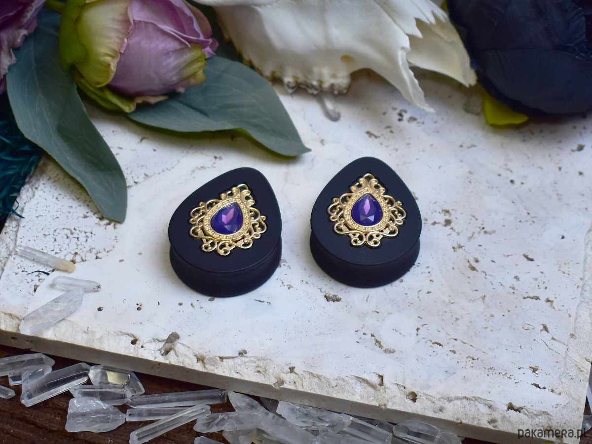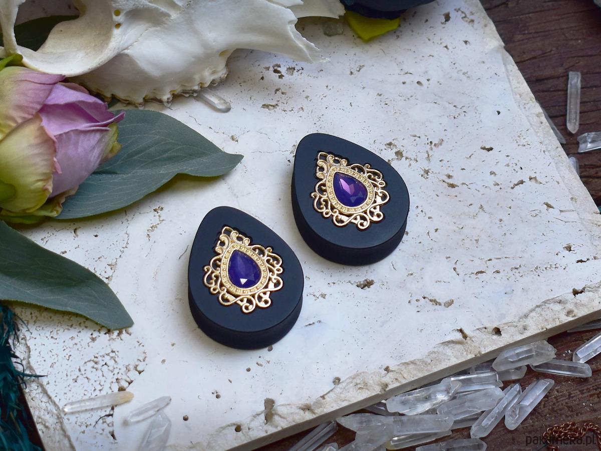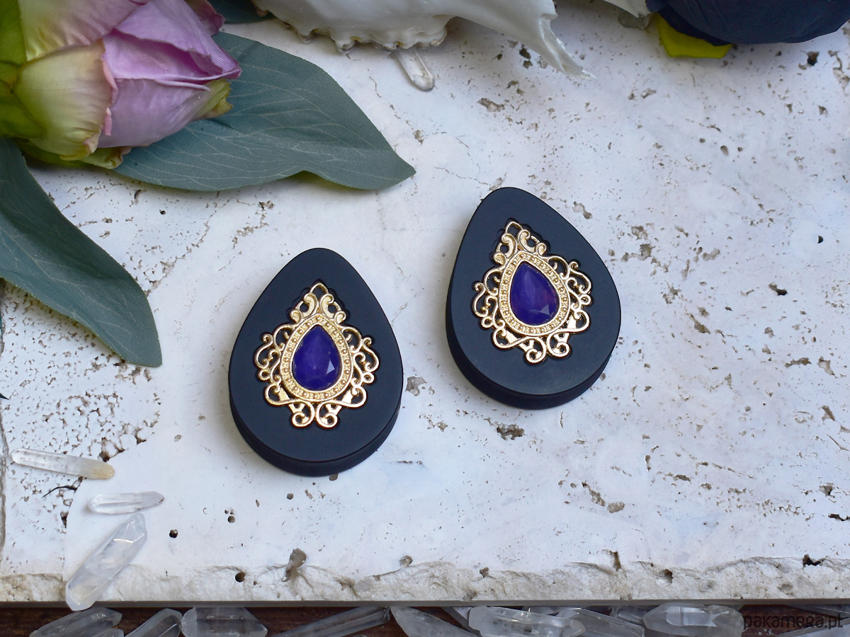 Tunele do uszu 34-60mm / łezki z wiktoriańską ozdobą i kryształkiem