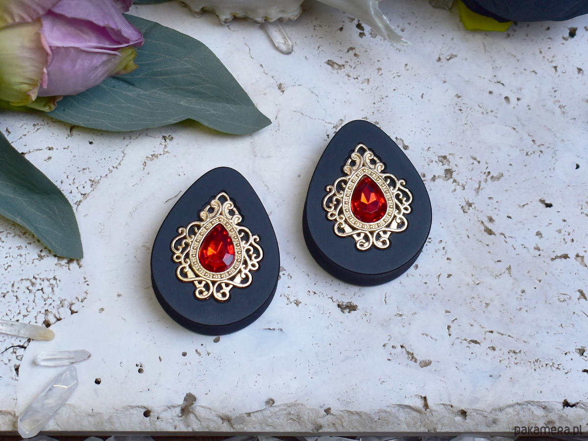 Tunele do uszu 34-60mm / łezki z wiktoriańską ozdobą i kryształkiem