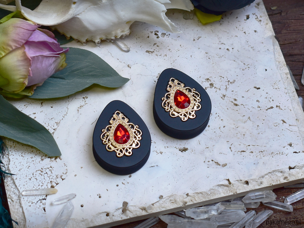 Tunele do uszu wykonane z biokompatybilnej żywicy, wykonane w technologii 3D, ręcznie wykonane i malowane. Bardzo lekkie i siodłowe dzięki pustemu tyłowi, co sprawia, że nie wypadają z uszu. Idealne dla osób szukających wygodnych rozwiązań do noszenia na co dzień. Wiktoriańska ozdoba ma ten sam wymiar dla wszystkich rozmiarów tuneli.