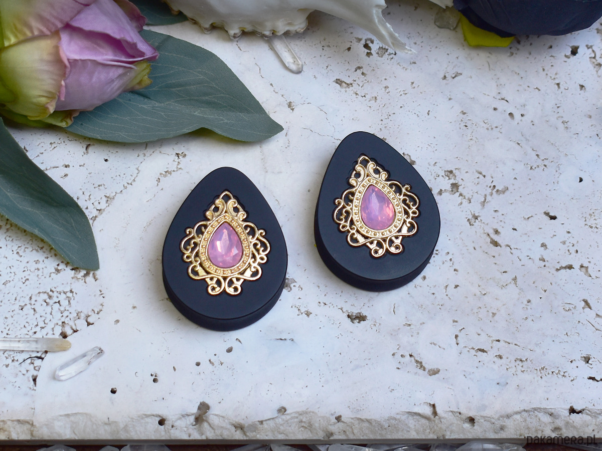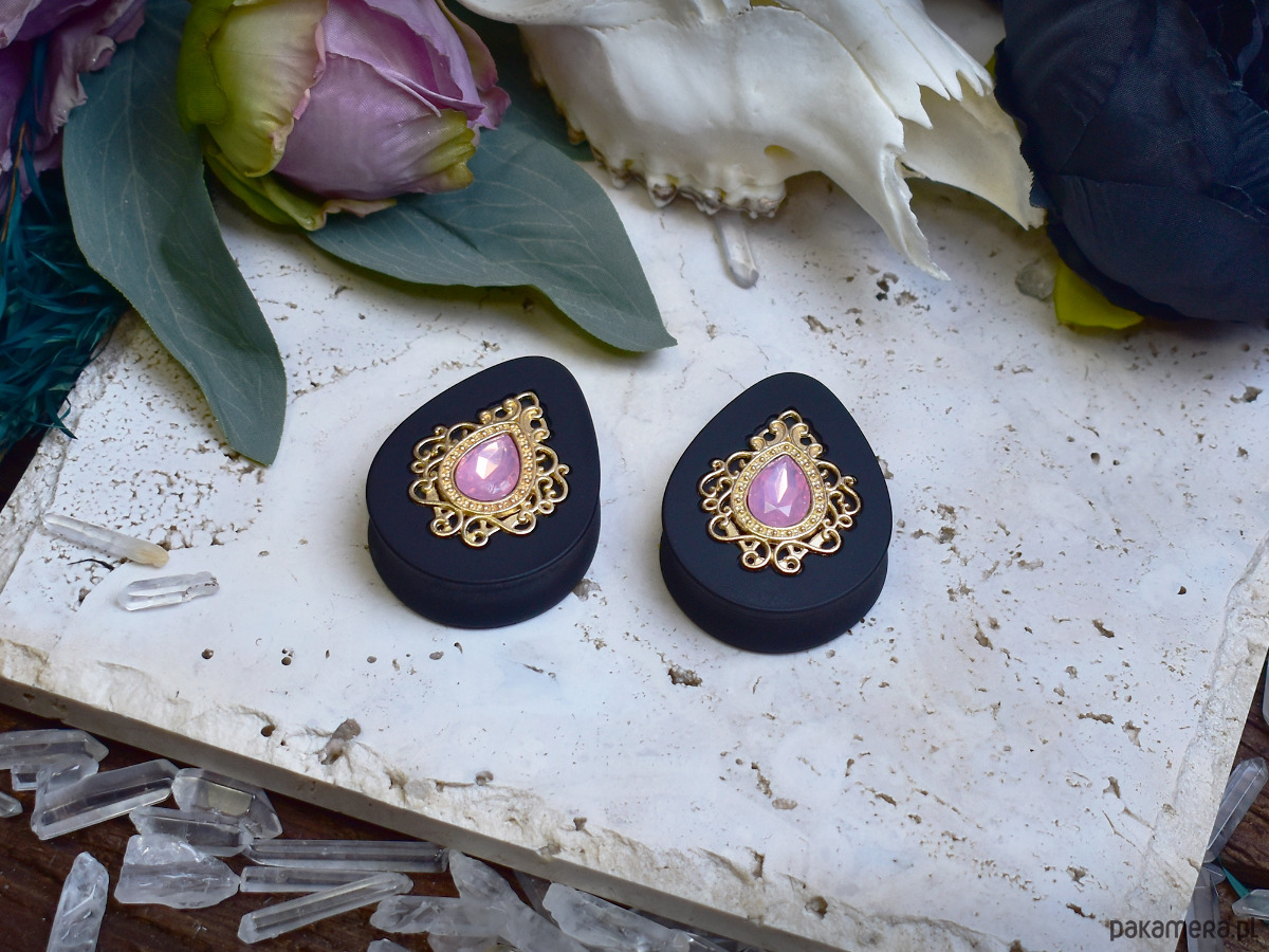 Tunele do uszu 34-60mm / łezki z wiktoriańską ozdobą i kryształkiem