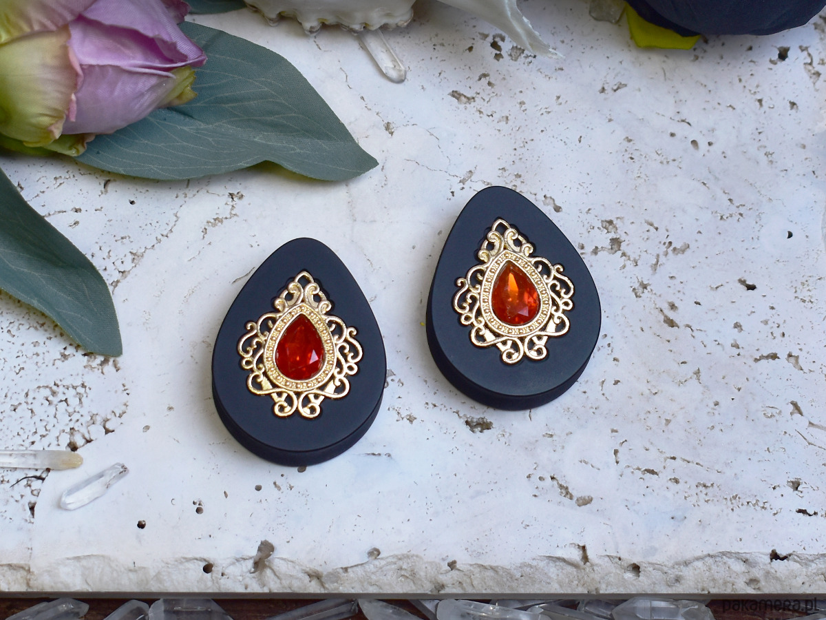 Tunele do uszu 34-60mm / łezki z wiktoriańską ozdobą i kryształkiem