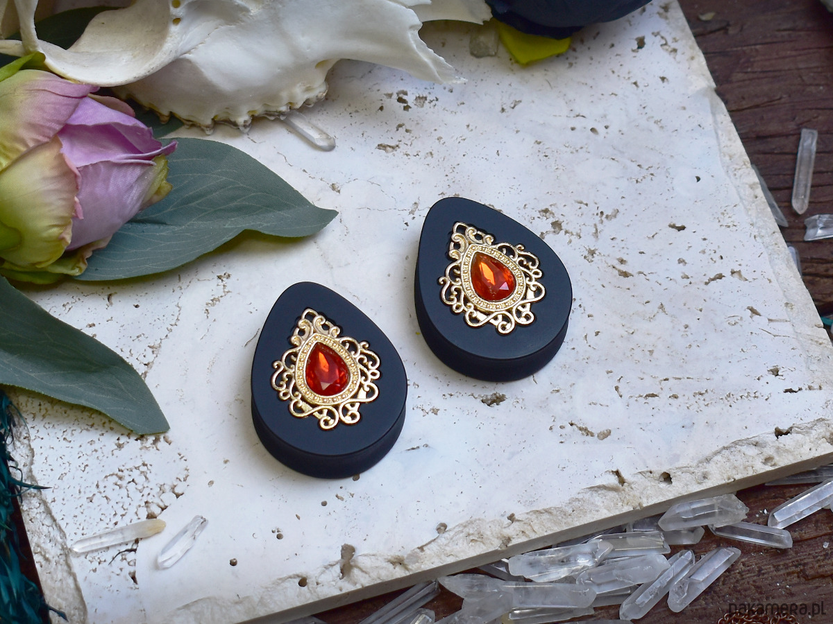Tunele do uszu wykonane z biokompatybilnej żywicy, wykonane w technologii 3D, ręcznie wykonane i malowane. Bardzo lekkie i siodłowe dzięki pustemu tyłowi, co sprawia, że nie wypadają z uszu. Idealne dla osób szukających wygodnych rozwiązań do noszenia na co dzień. Wiktoriańska ozdoba ma ten sam wymiar dla wszystkich rozmiarów tuneli.