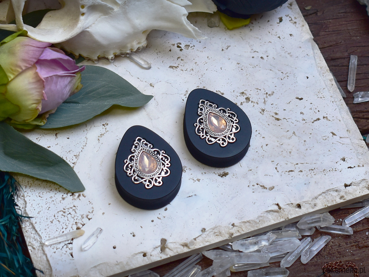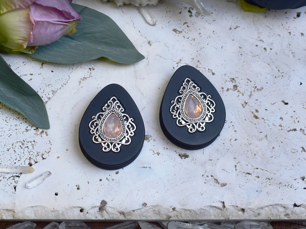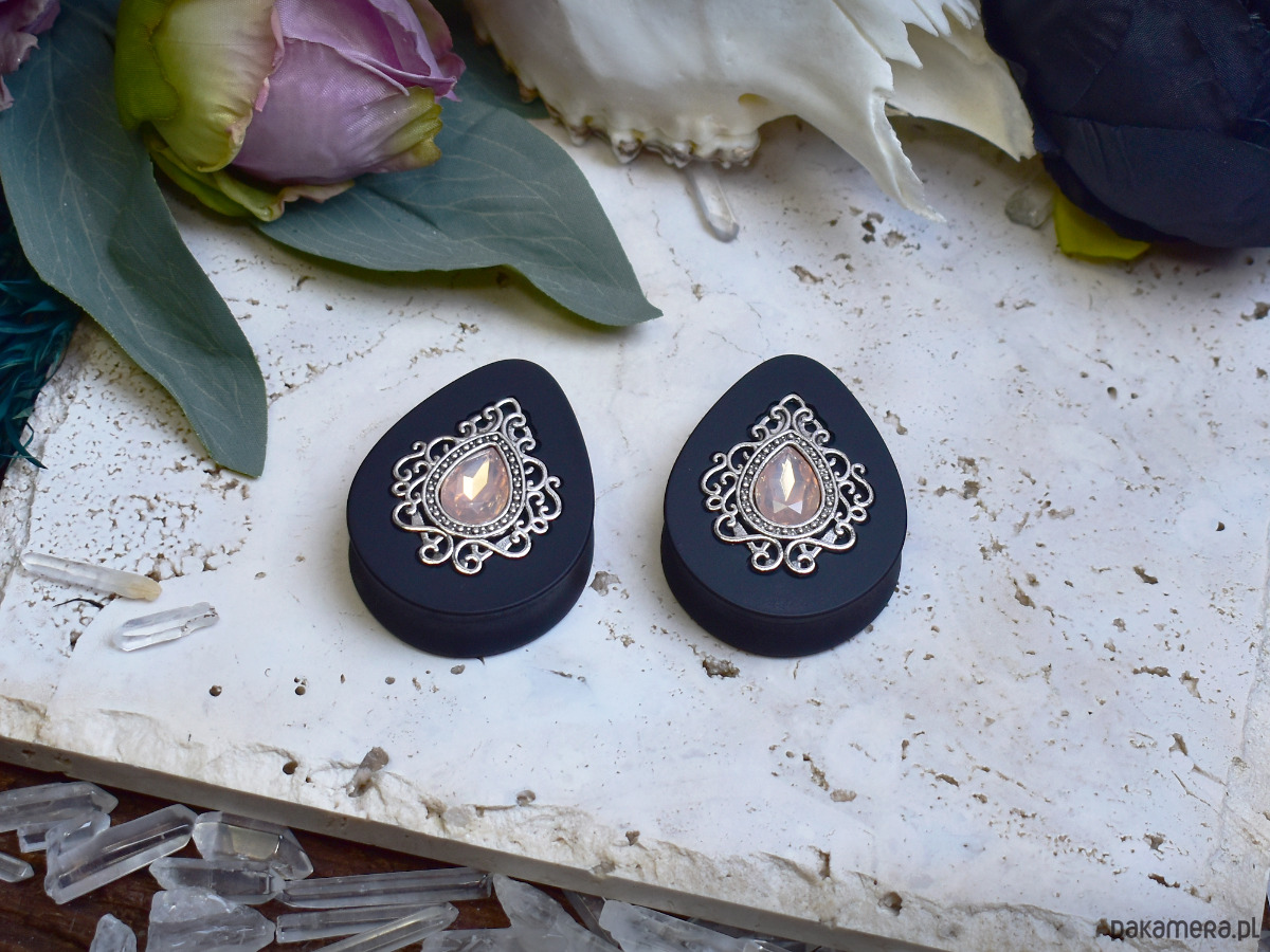 Tunele do uszu 34-60mm / łezki z wiktoriańską ozdobą i kryształkiem