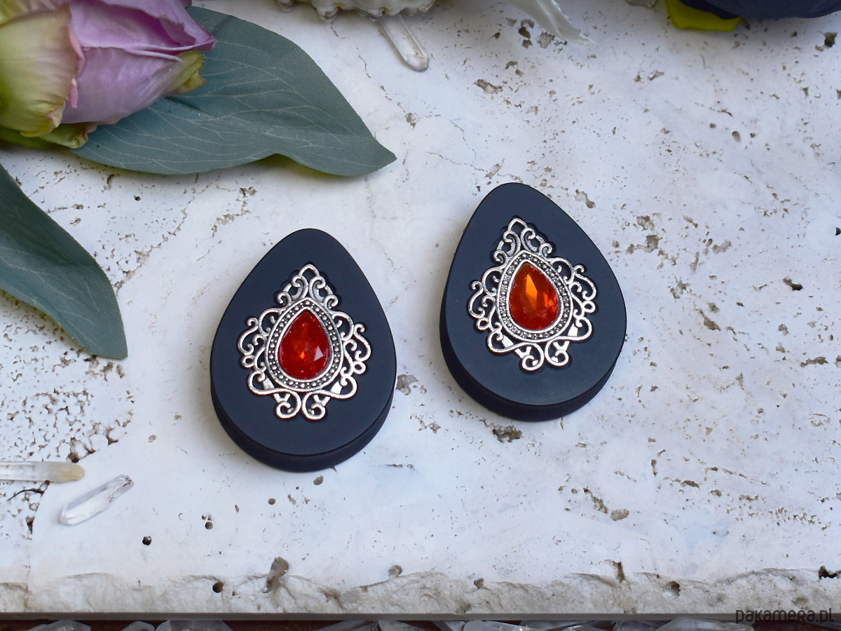 Tunele do uszu 34-60mm / łezki z wiktoriańską ozdobą i kryształkiem