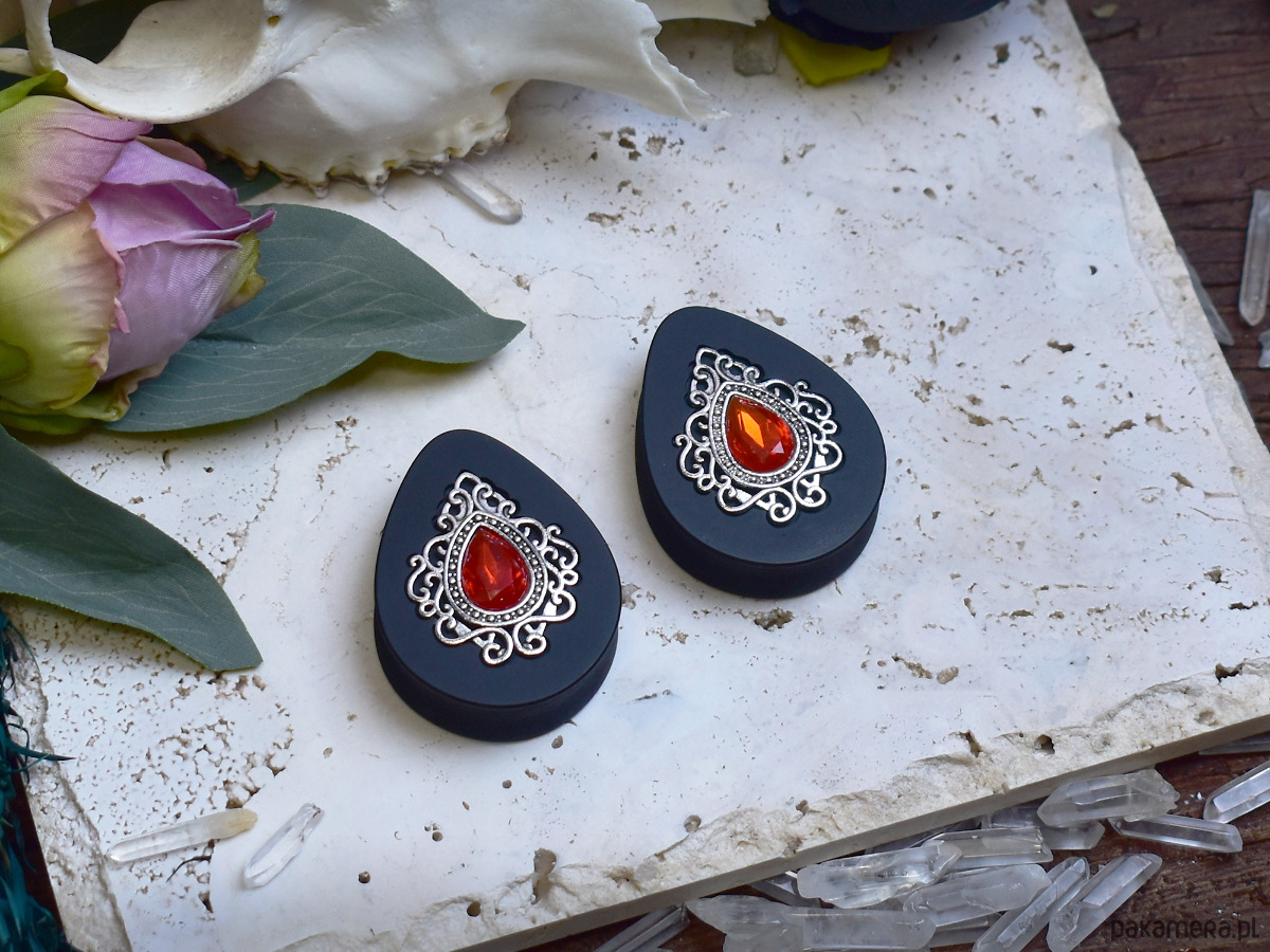 Tunele do uszu wykonane z biokompatybilnej żywicy, wykonane w technologii 3D, ręcznie wykonane i malowane. Bardzo lekkie i siodłowe dzięki pustemu tyłowi, co sprawia, że nie wypadają z uszu. Idealne dla osób szukających wygodnych rozwiązań do noszenia na co dzień. Wiktoriańska ozdoba ma ten sam wymiar dla wszystkich rozmiarów tuneli.