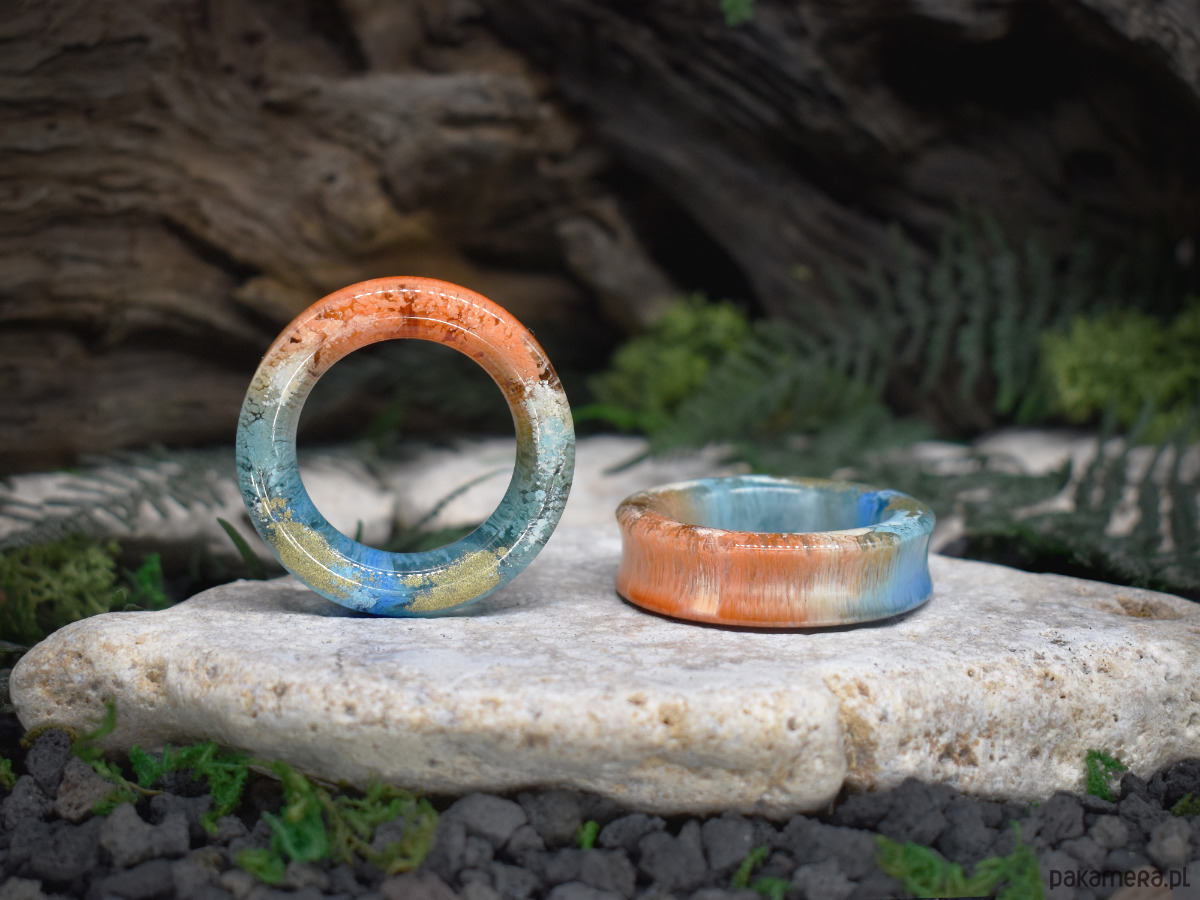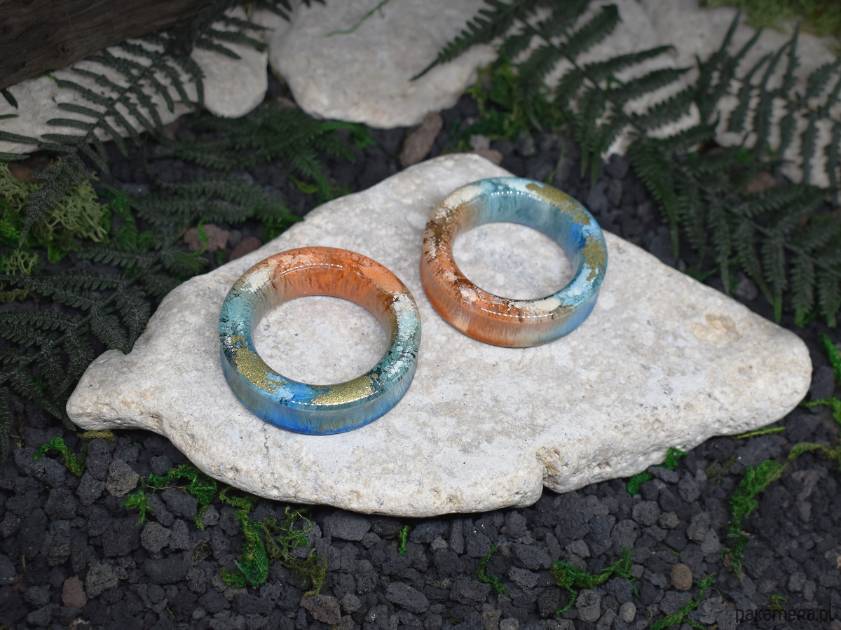 Ręcznie wykonane tunele/plugi siodłowe do uszu w rozmiarze 54mm. Tunele są wykonane tuszami alkoholowymi przez co każda sztuka jest unikalna.