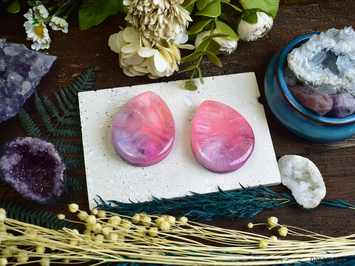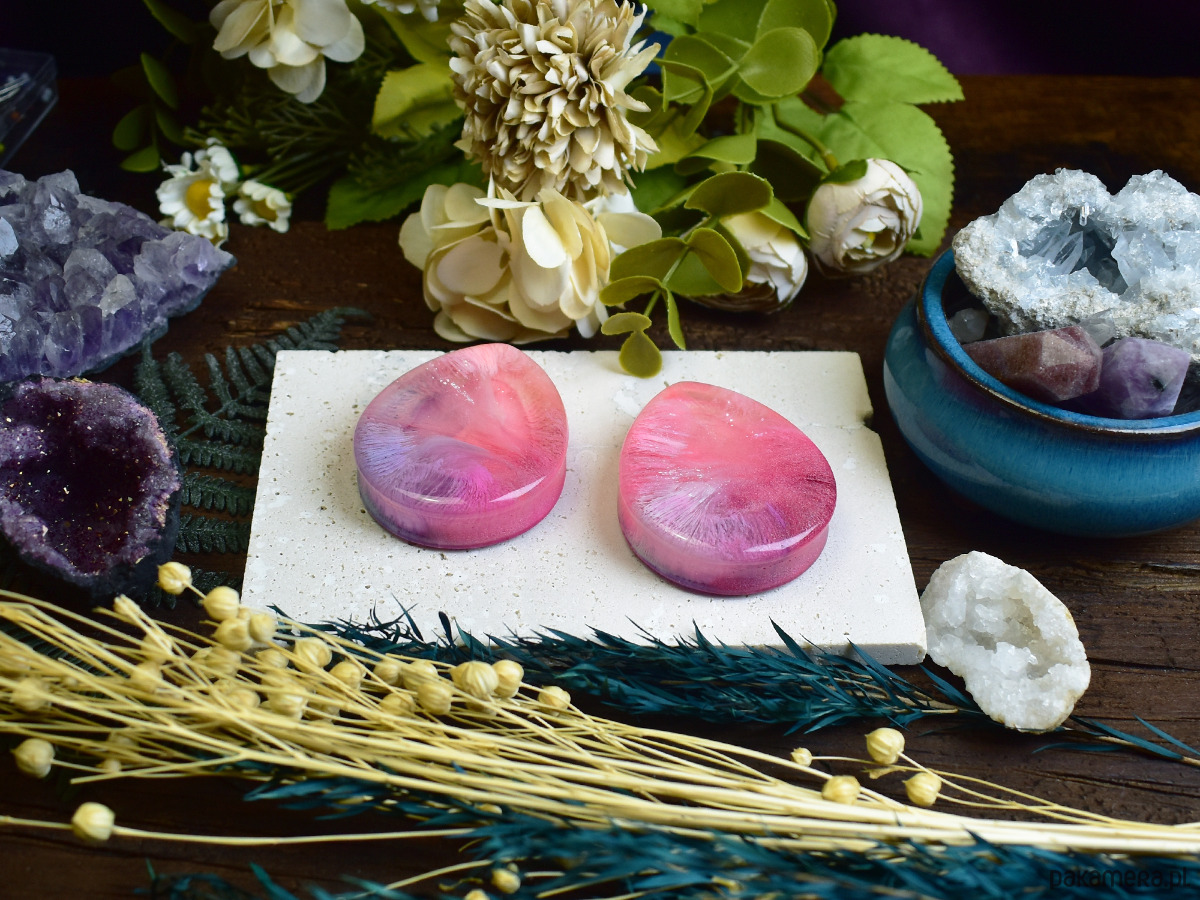 Ręcznie wykonane tunele do uszu z wysokiej jakości żywicy i tuszy alkoholowych, dzięki czemu każda para wyróżnia się niepowtarzalnym, wielobarwnym wzorem. Proces tworzenia sprawia, że każdy egzemplarz jest wyjątkowy, co nadaje im unikalny charakter. Zaleca się noszenie tuneli wyłącznie w wygojonych dziurkach, aby uniknąć podrażnień i zapewnić maksymalny komfort użytkowania.