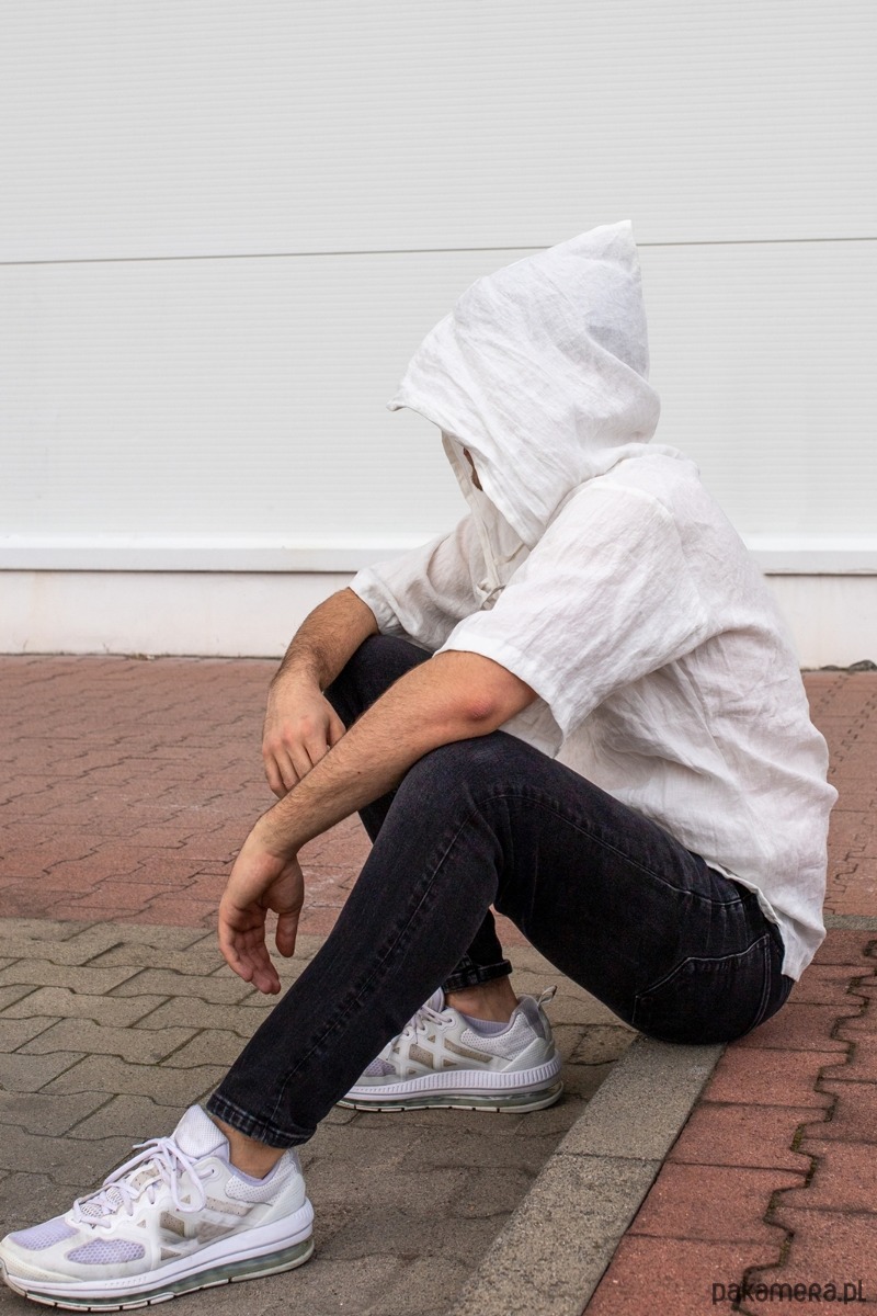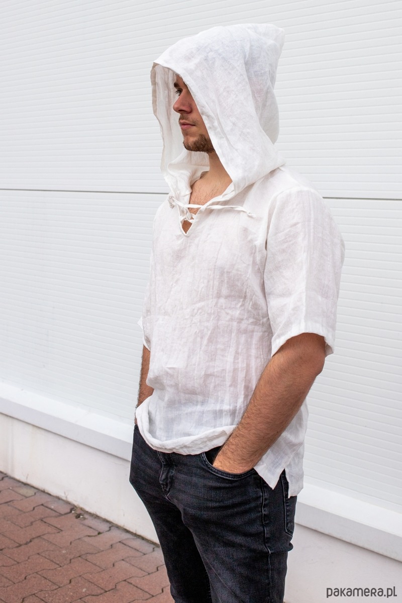 Lniana tunika z dużym kapturem i wiązaniem pod szyją wykonana z polskiego lnu 100% , dodatkowo zmiękczany dla lepszego komfortu noszenia, poprzez zmiękczanie len jest on bardzo miły i miękki w dotyku :)