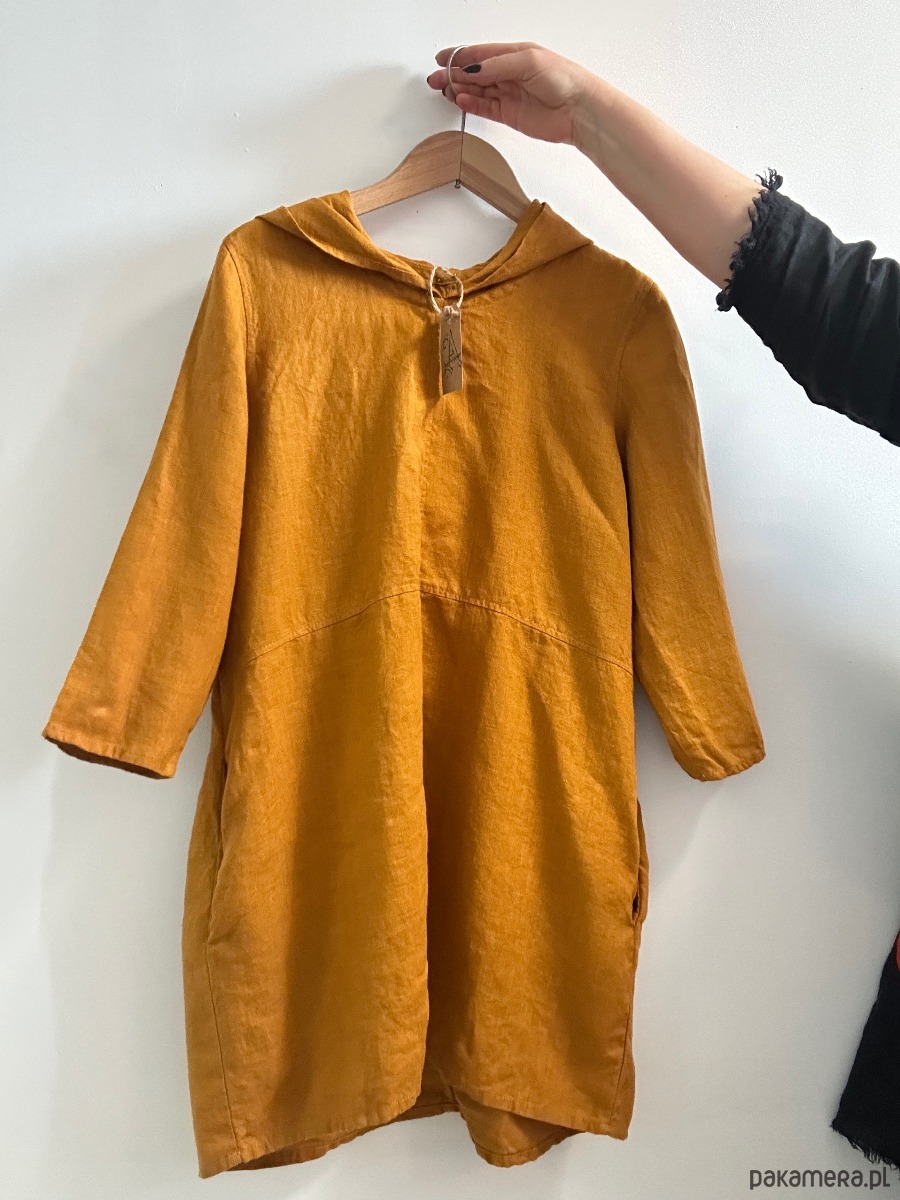 Tunika damska ze zmiękczanego lnu. Autorski projekt tuniki, która poprzez swój krój idealnie tuszuje to co niekoniecznie chcemy pokazać. Wykonana z europejskiego lnu wysokiej jakości. Gotowy produkt jest wykurczany, dzięki czemu Twoja tunika po praniu nie zmieni rozmiaru.