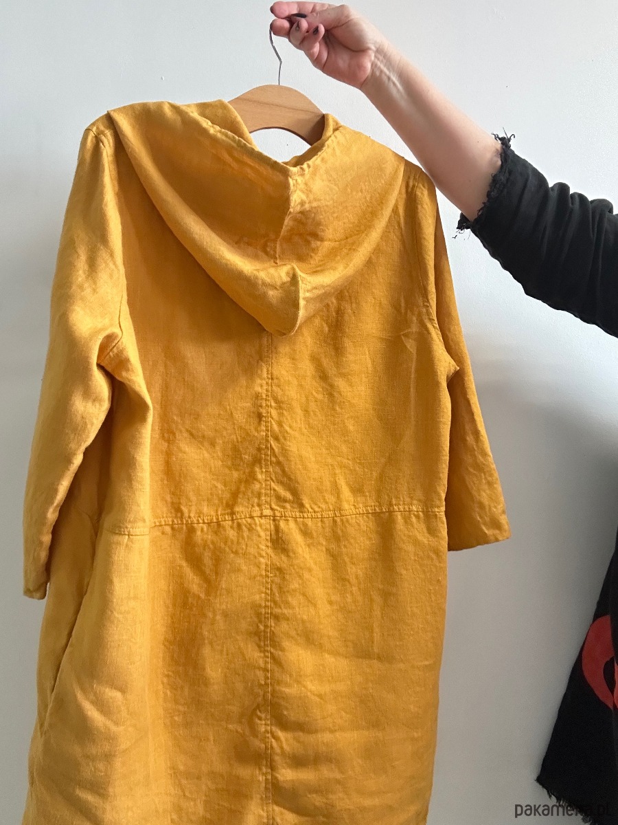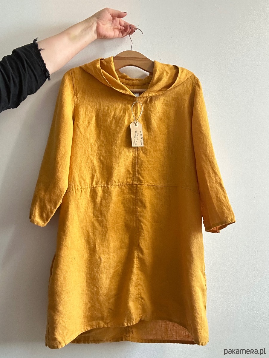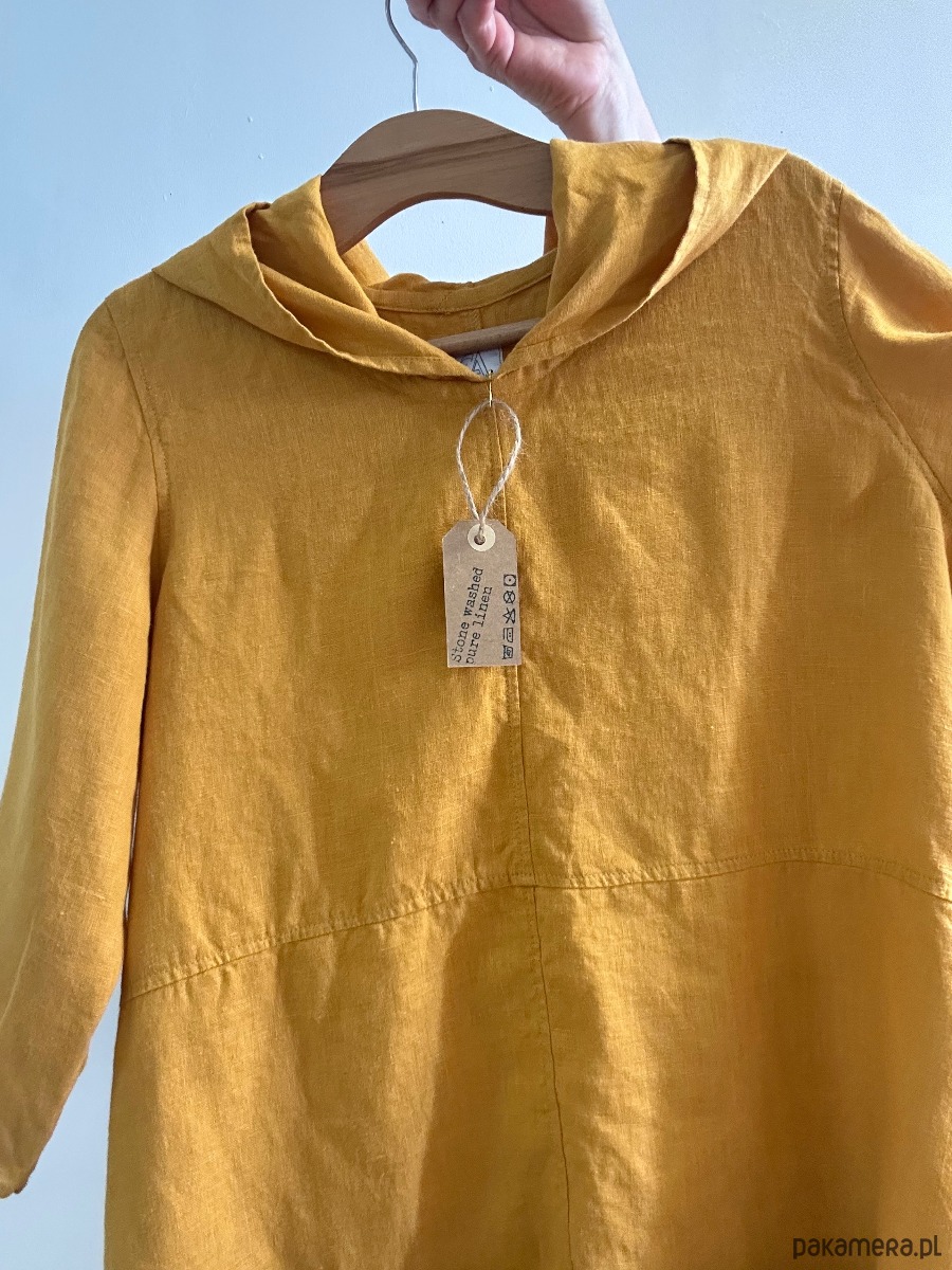 Lniana, żółta tunika z kapturem.