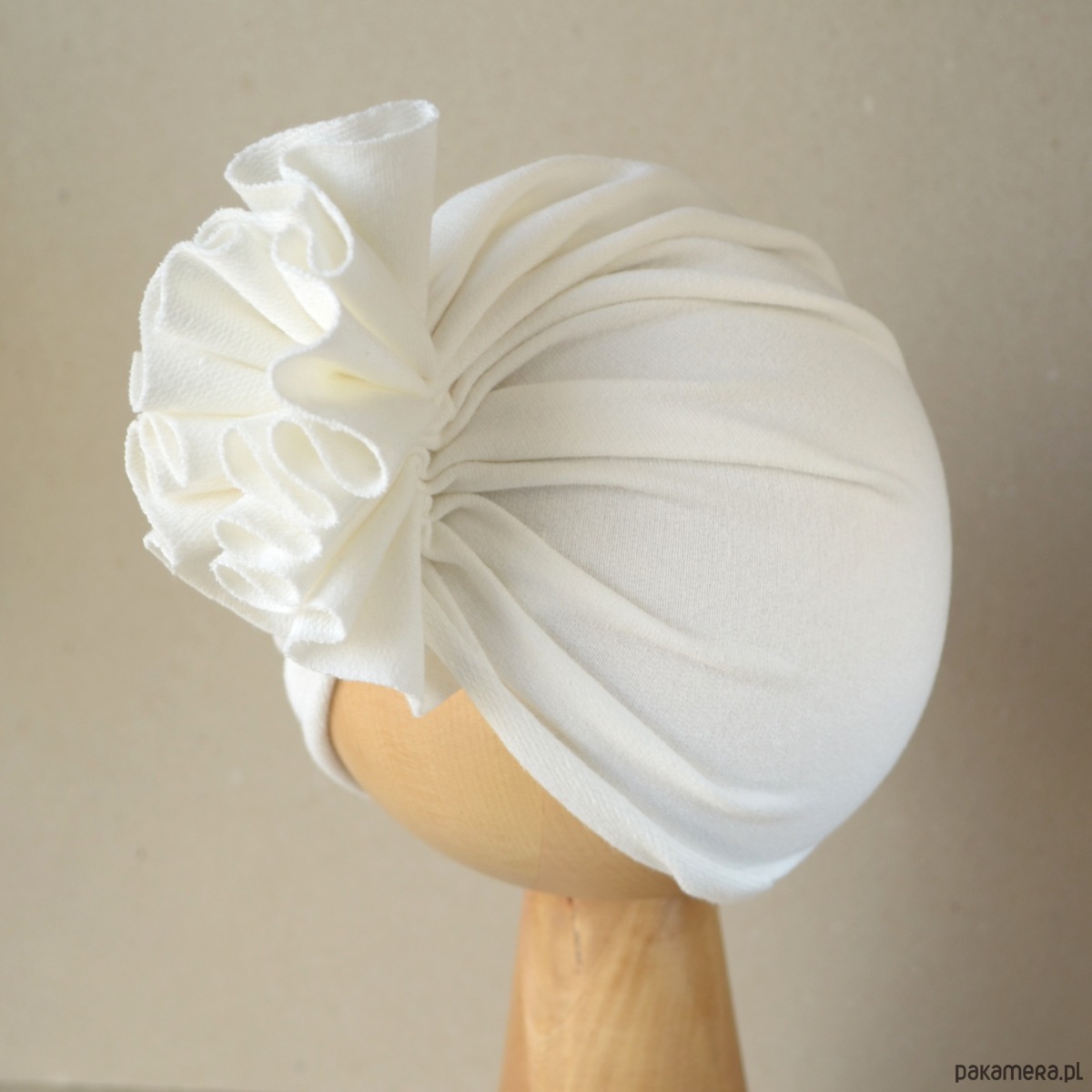 Brzegi turbanu są surowo wykończone, dzięki czemu lekko się wywijają.