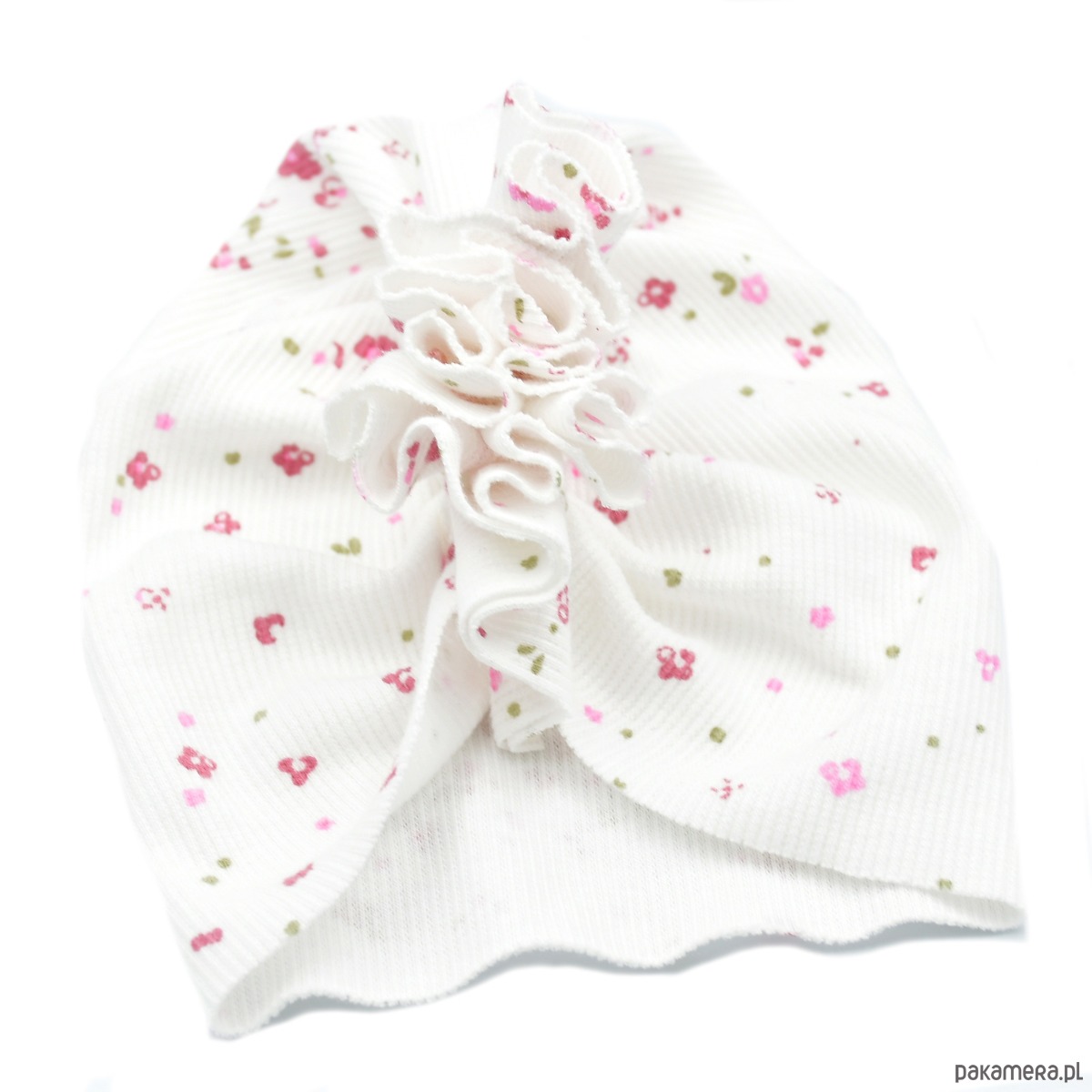 Turban czapeczka bawełniana prążek biała w kwiatki