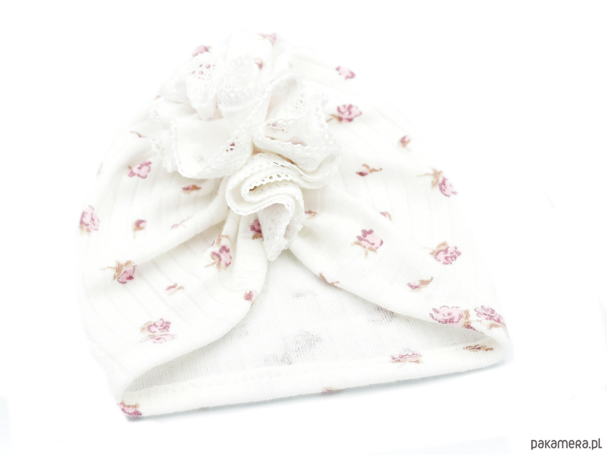 TURBAN BAWEŁNIANY Z FALBANKĄ i koronką