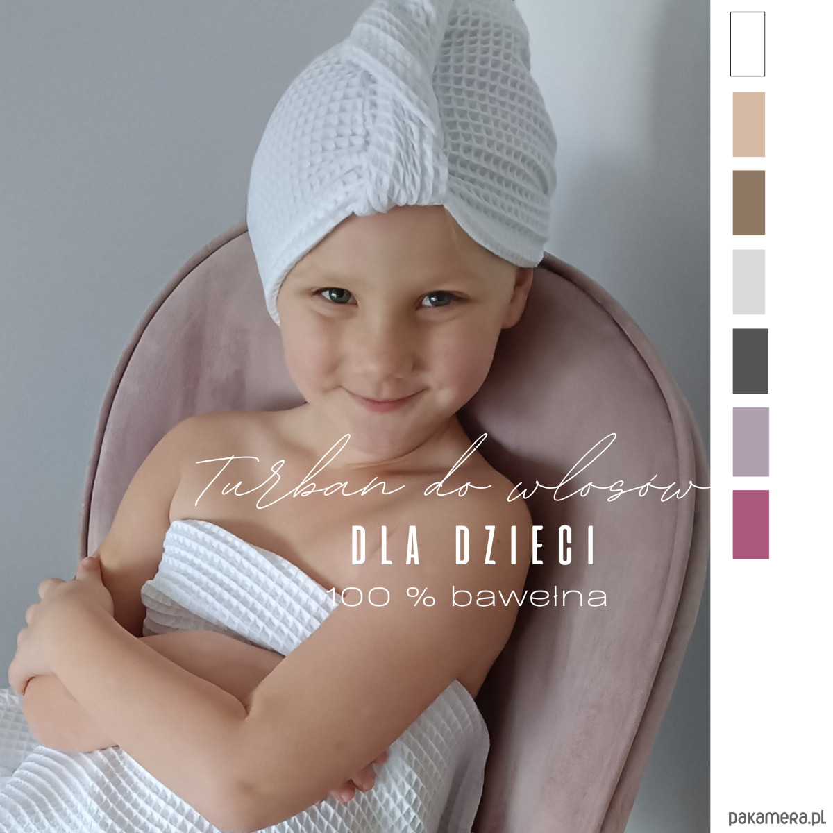 Turban do suszenia włosów dziecięcy personalizowany, bawełniany (kolory)