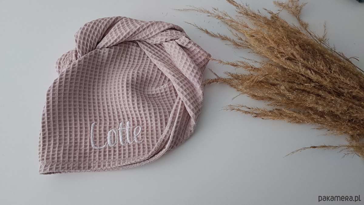Naturalny, miękki i wyjątkowo chłonny turban z wafla bawełnianego to praktyczny dodatek po kąpieli. Otula główkę ciepłem i miękkością, chroniąc przed chłodem i przeziębieniem. Dzięki lekkiej strukturze wafla bawełnianego nie obciąża włosów ani skóry głowy, a jego naturalna chłonność pozwala szybko osuszyć włosy bez potrzeby używania suszarki. Przeznaczony jest zarówno dla malutkich dzieci od 2 lat po nastolatki (uniwersalny rozmiar). To doskonały sposób na budowanie zdrowych nawyków pielęgnacyjnych od najmłodszych lat. Uczy troski, pielęgnacji włosów i dbania o ich kondycję.