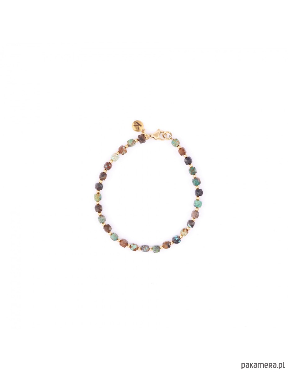Bransoletka wykonana jest z kosteczek Turkusu afrykańskiego w przepięknych kolorach ziemi oraz złotych Hematytów.