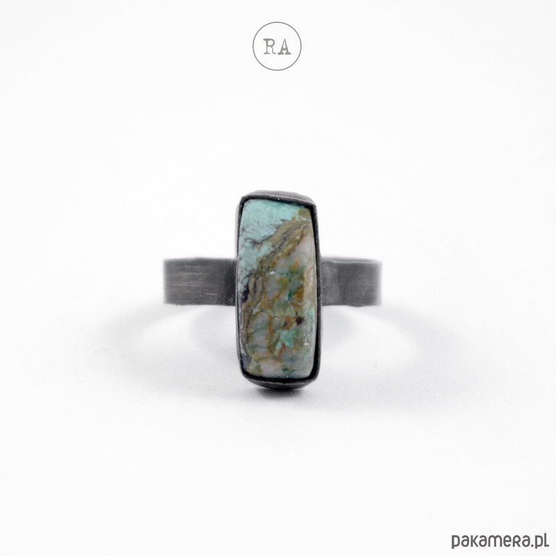 Pierścionek wykonany ręcznie ze srebra, oksydowany,