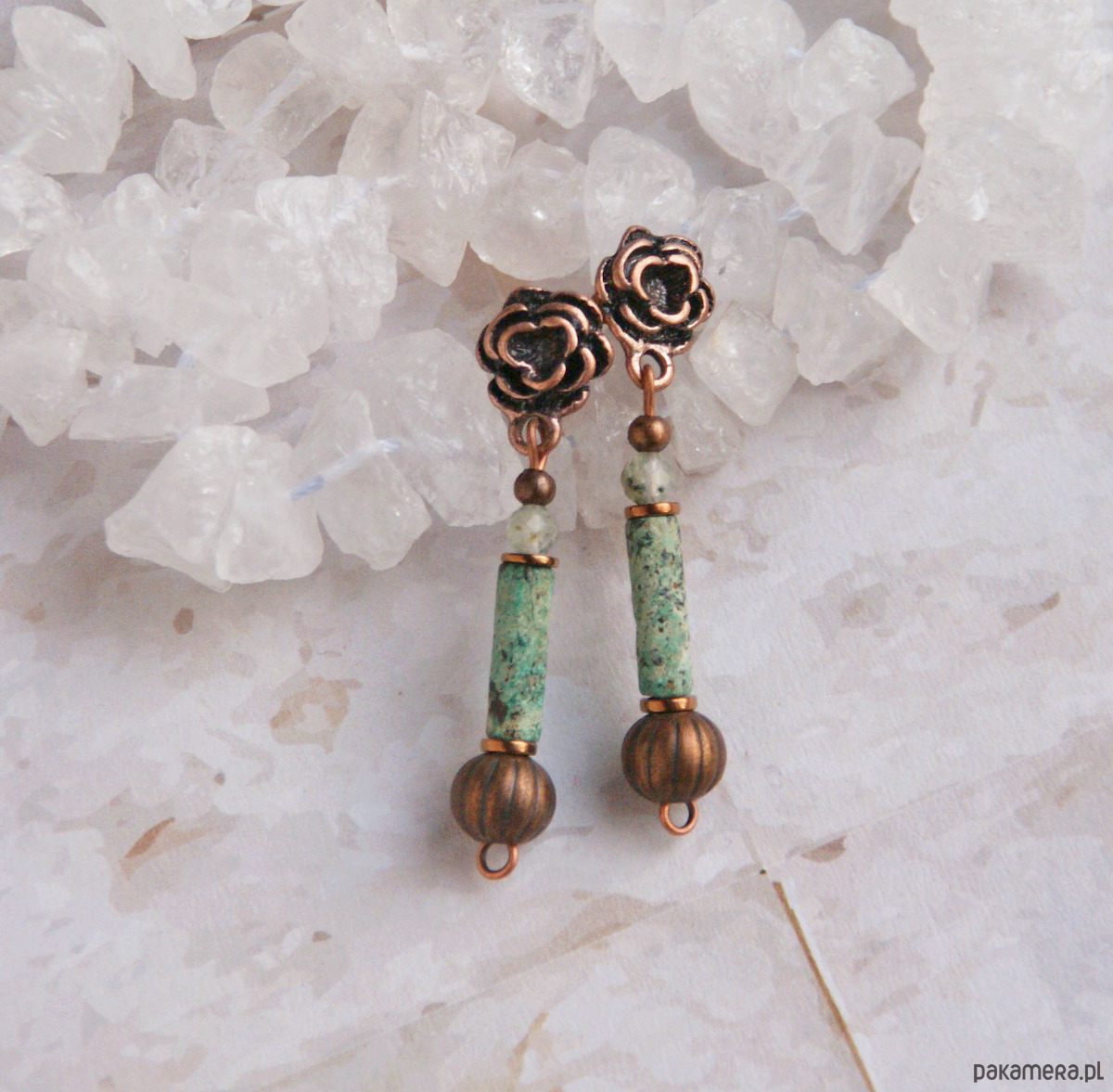 TURKUS w miedzi - kolczyki - róże