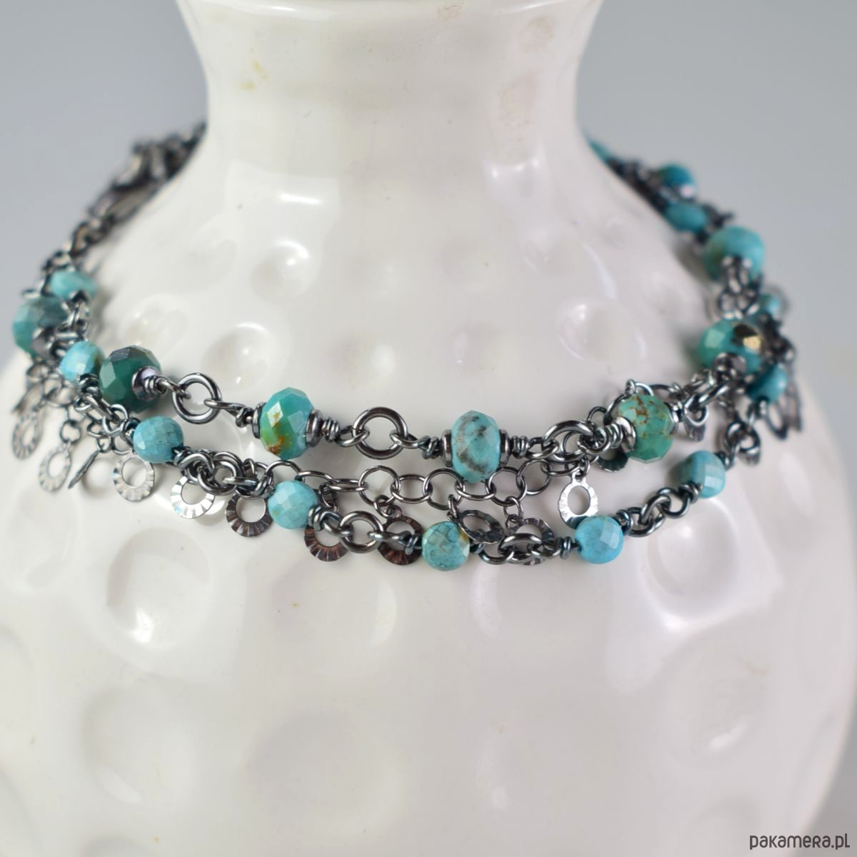 Bransoletka wykonana w całości ze srebra (próba 925) z turkusem. Całość została zoksydowana (przyciemniona) i wypolerowana. Długość regulowana 20 - 23,5 cm. Biżuteria zostanie ozdobnie zapakowana.
