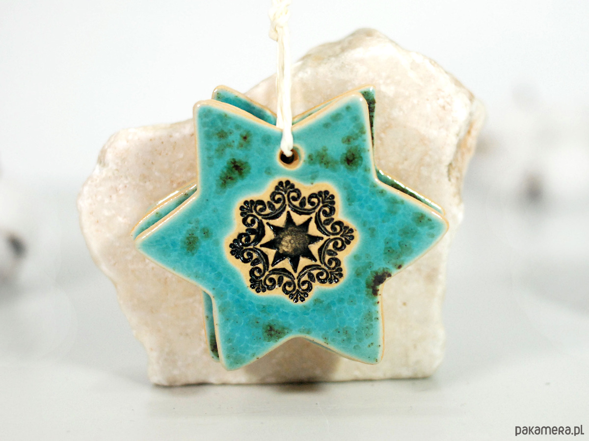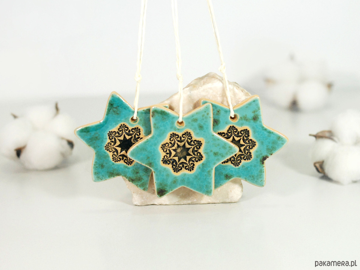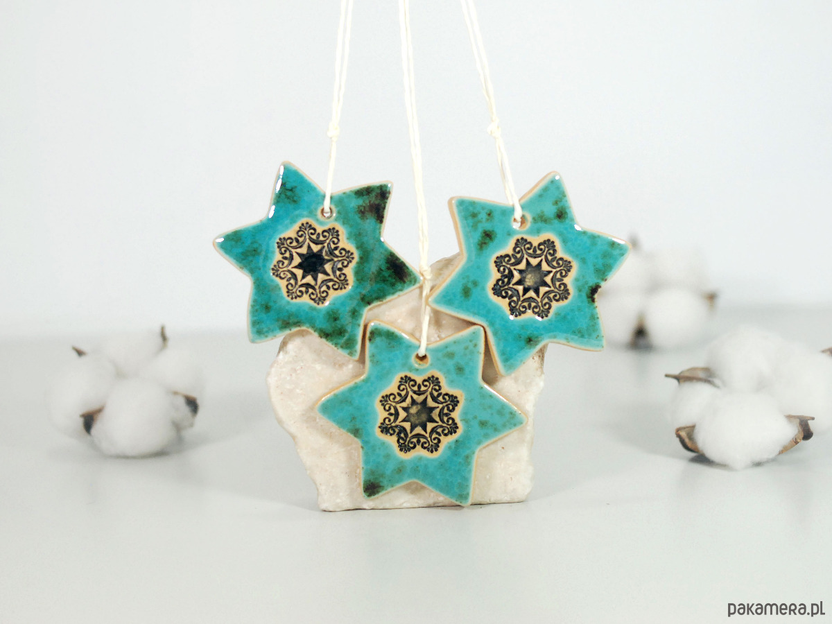 Turkusowe gwiazdki choinkowe - ozdoby ceramiczne
