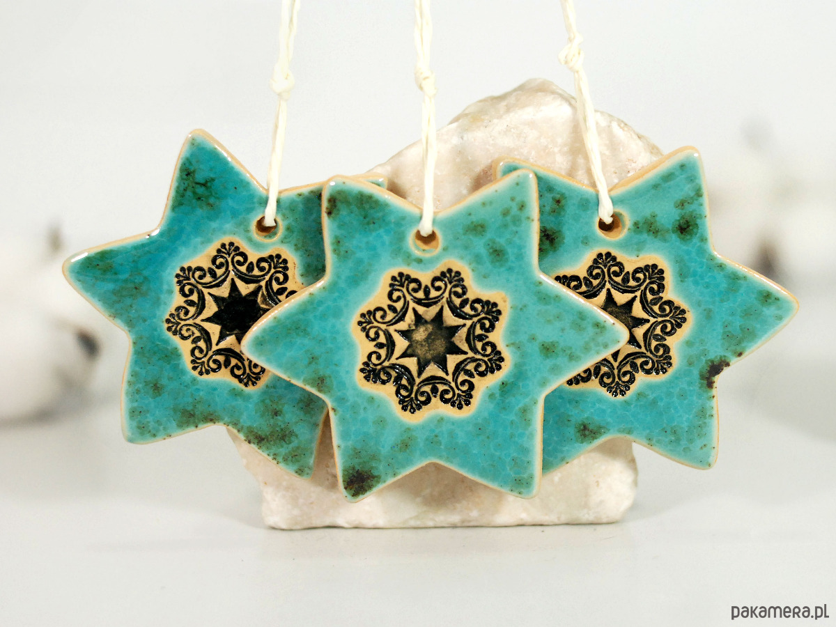 Turkusowe gwiazdki choinkowe - ozdoby ceramiczne