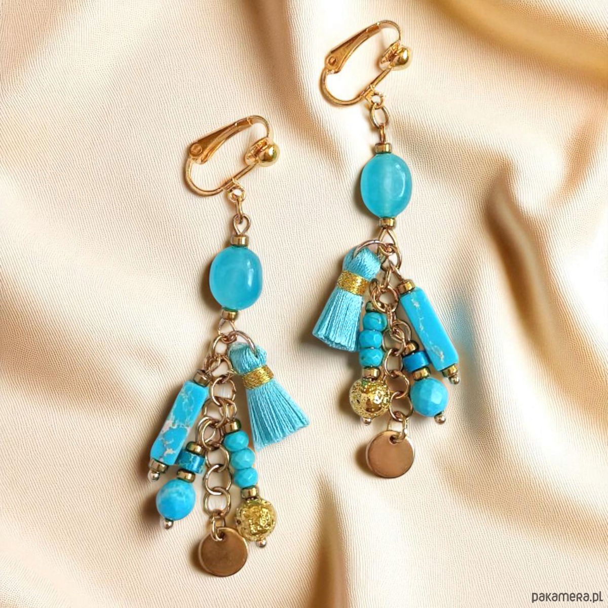 Turkusowe klipsy Boho : długie i fikuśne