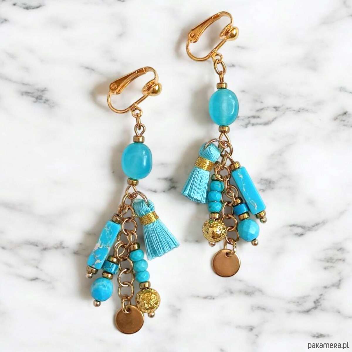 Turkusowe klipsy Boho : długie i fikuśne