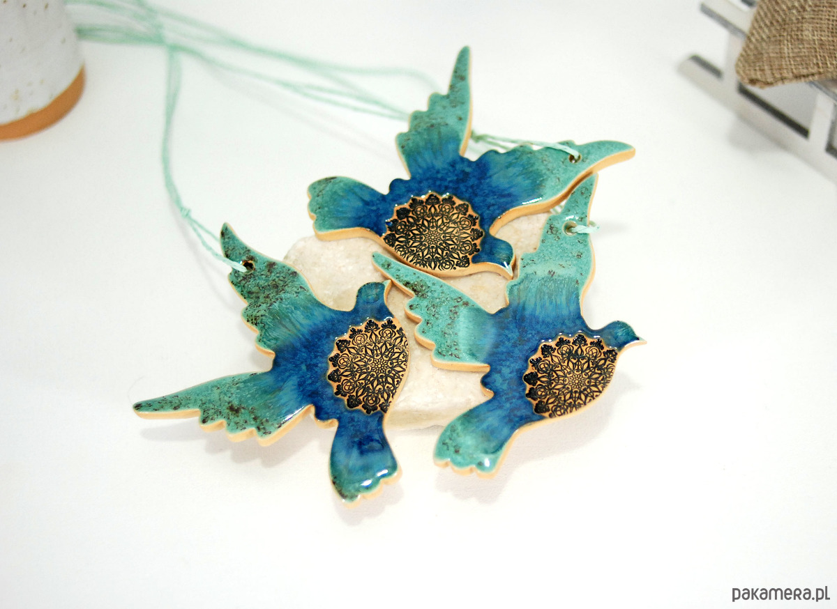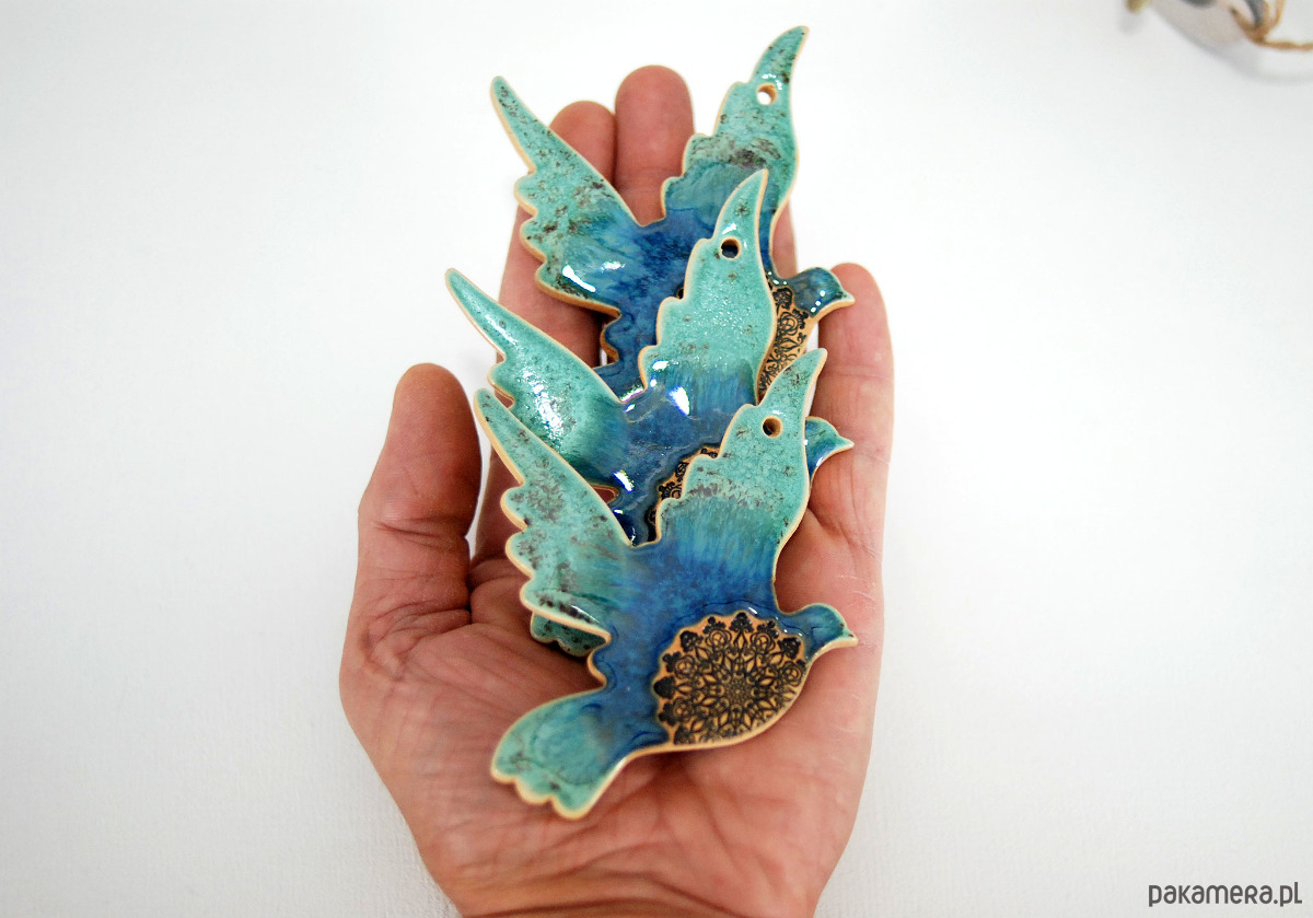 Turkusowe ptaki w locie - ceramiczne ozdoby wielkanocne