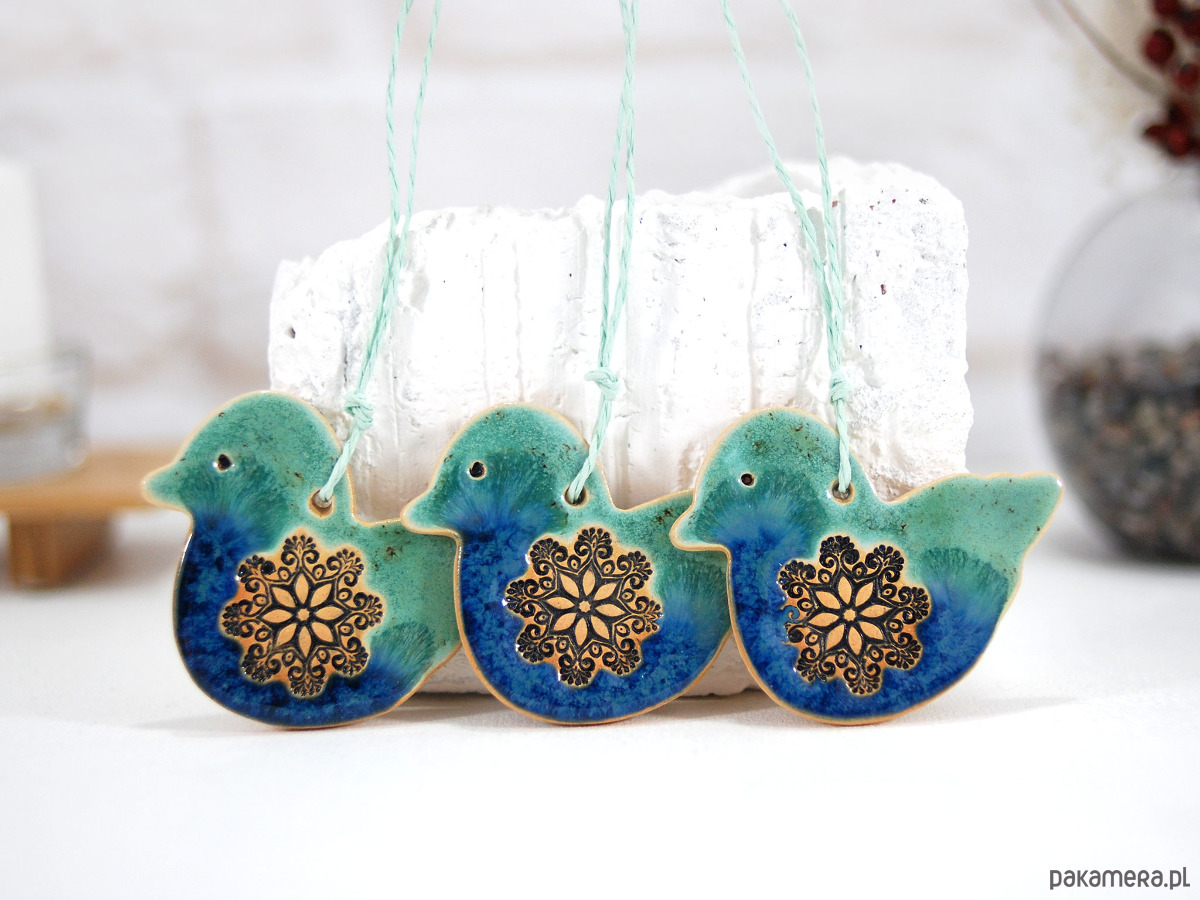 Turkusowe sikorki - ceramiczne ozdoby wielkanocne