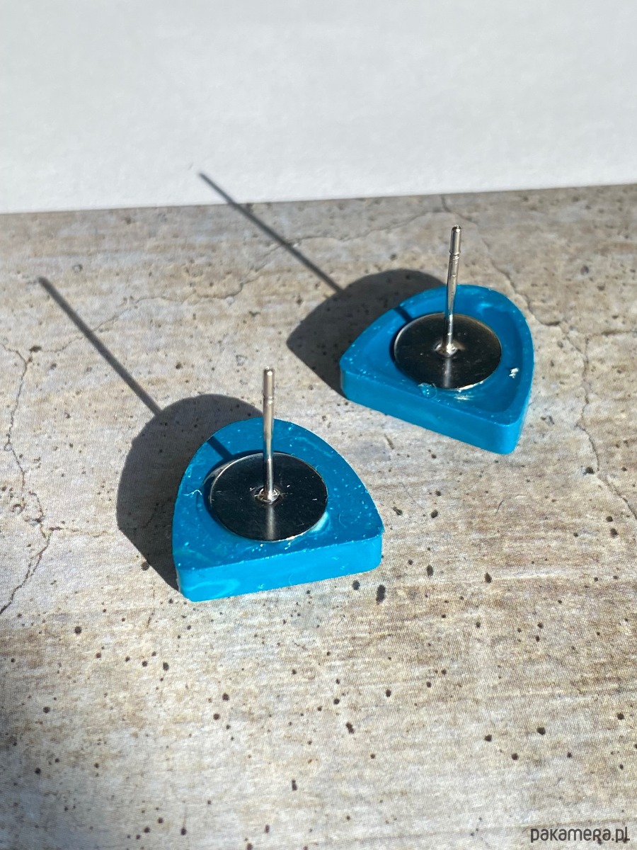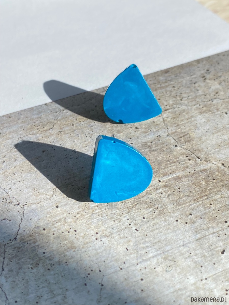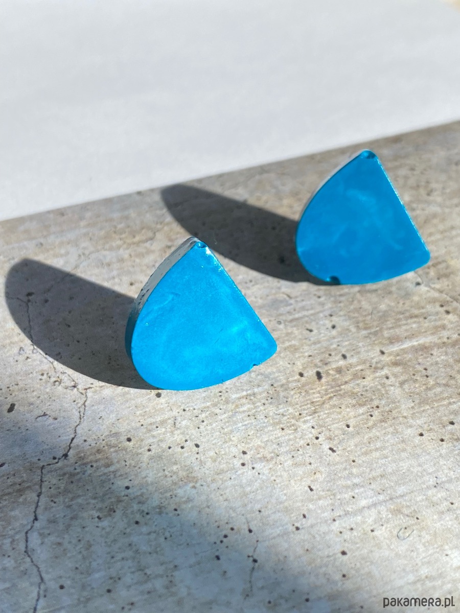 Turkusowe kolczyki z błyszczącym wykończeniem.