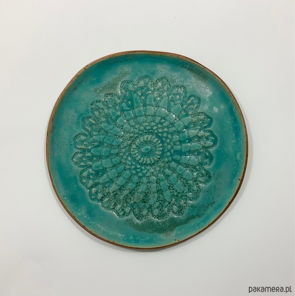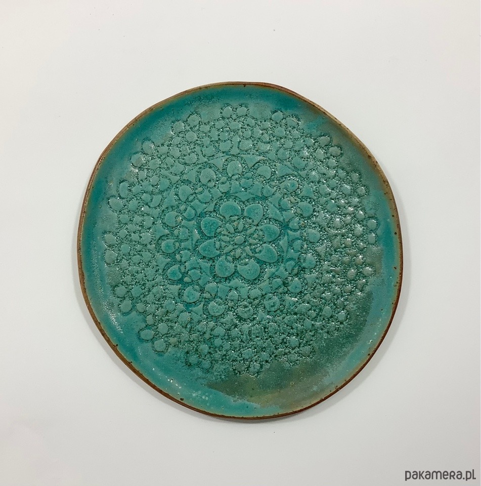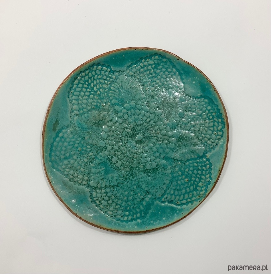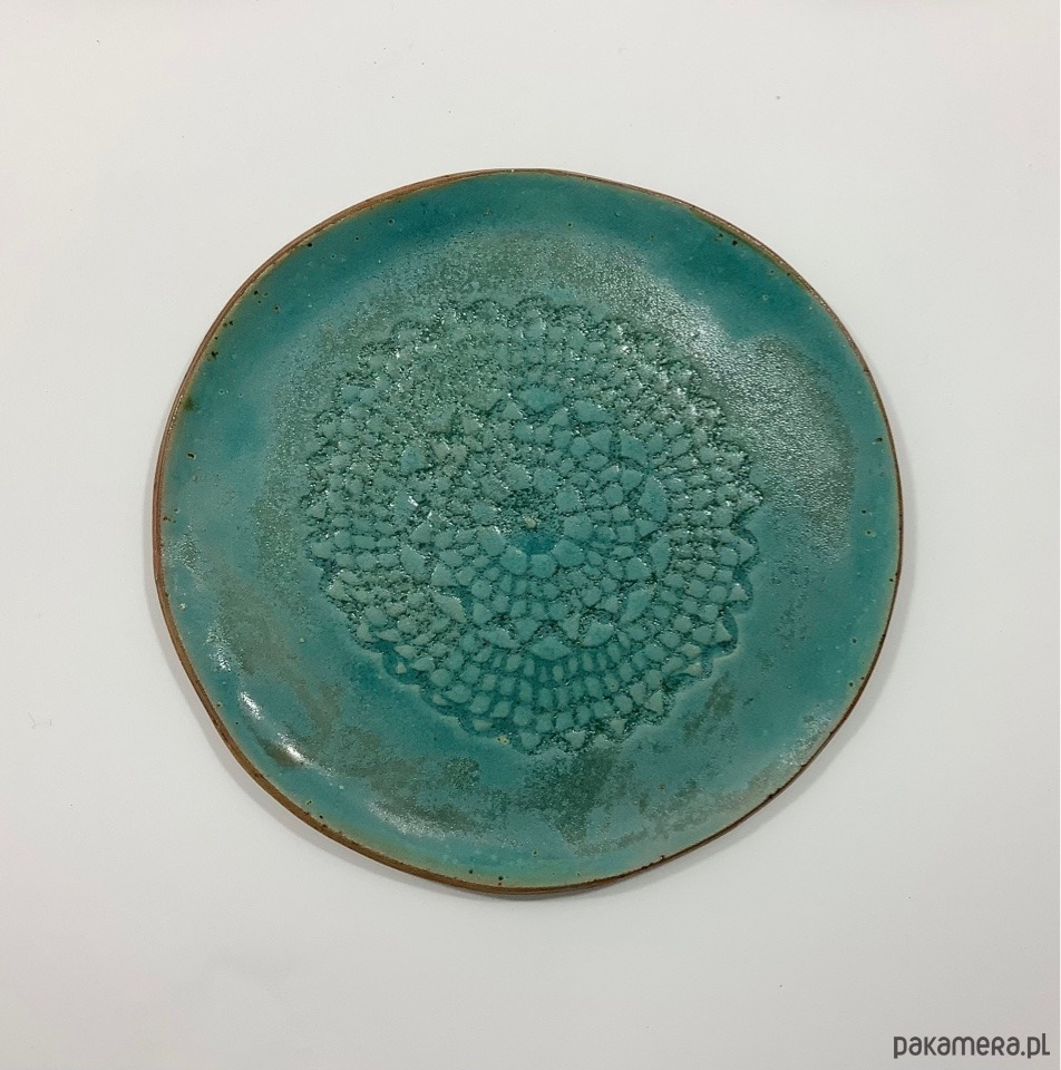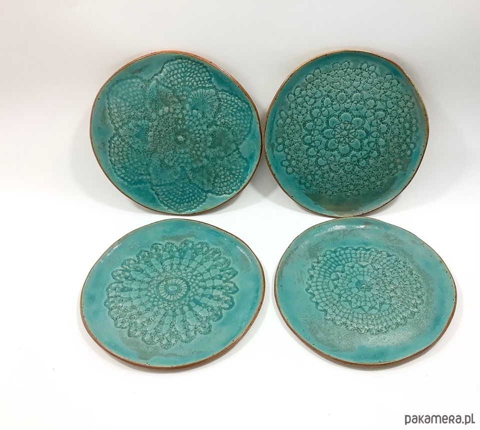 Zapraszam do kupna talerzy ręcznie robionych z gliny. Każdy wyjątkowy i jedyny w swoim rodzaju, poszkliwione na turkusowo satynowym szkliwem. Na każdym talerzu odbity motyw koronki. Niby obiadowe, ale świetnie sprawdzą się także, jako śniadaniowe- dla tych, którzy lubią mieć dużo miejsca na duże śniadanie:)