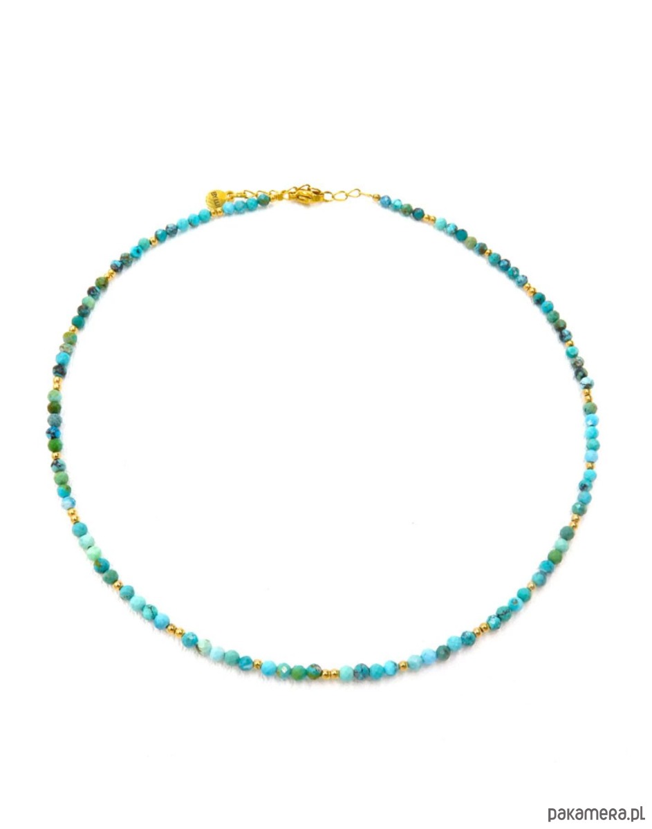 Zabierz ze sobą odrobinę raju, gdziekolwiek jesteś! Ten delikatny, ręcznie wykonany naszyjnik z kolekcji TURQUOISE SEYCHELLES to kwintesencja egzotycznej elegancji. Powstał z naturalnych, fasetowanych kulek turkusu oraz gładkich, złoconych hematytów, które pięknie odbijają światło i dodają blasku każdej stylizacji.