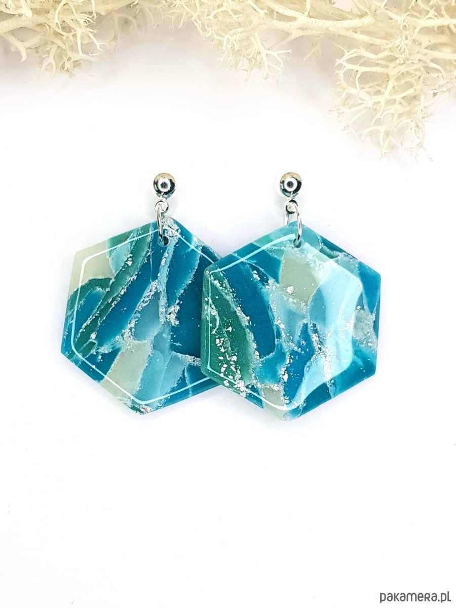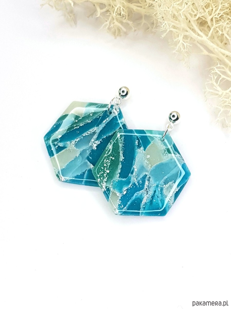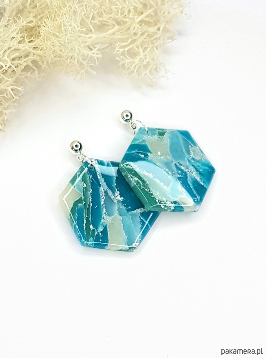 Turkusy heksagony kolczyki z gliny polimerowej ze srebrem