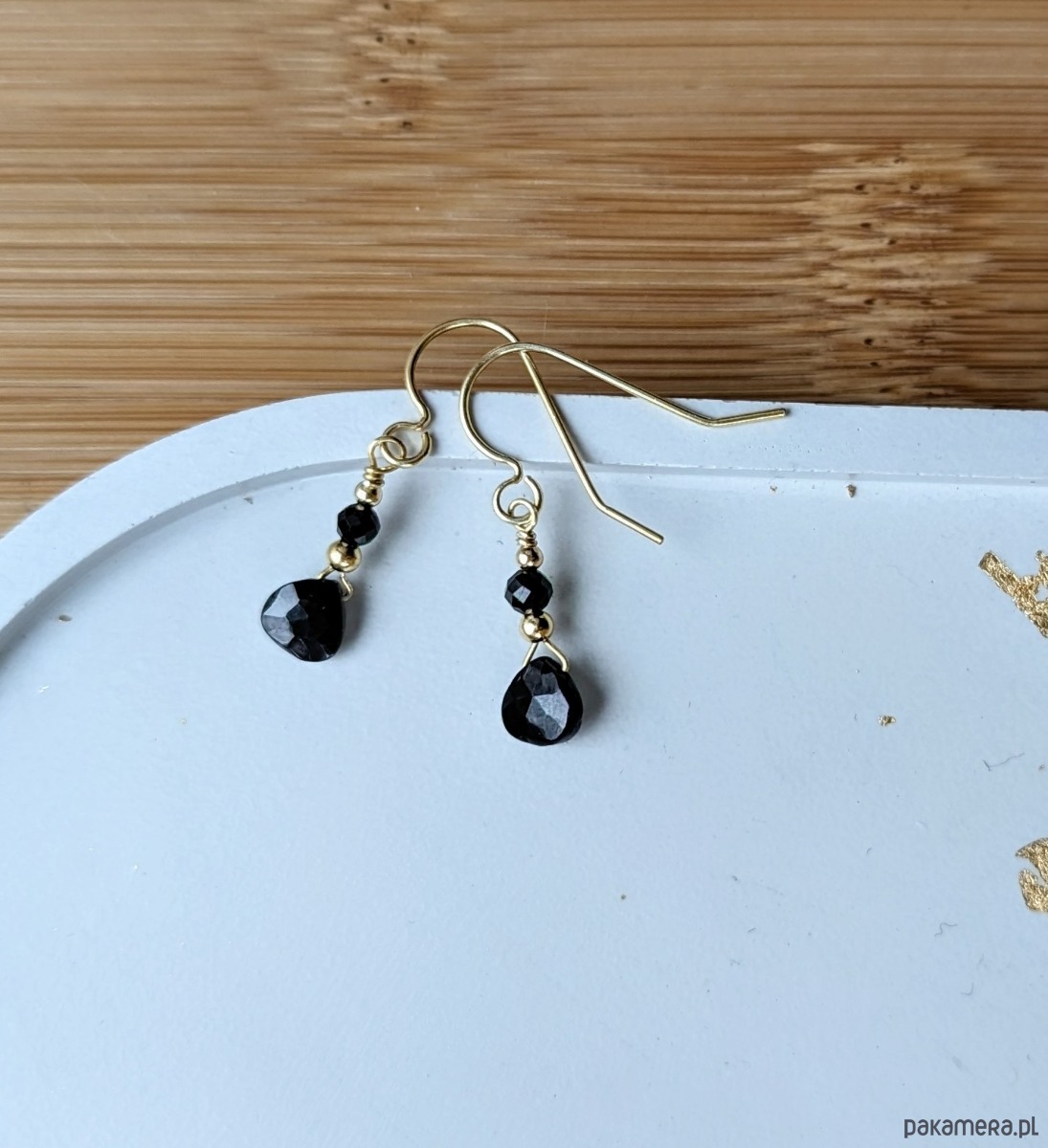 Turmalin kolczyki pozłacane, drobne