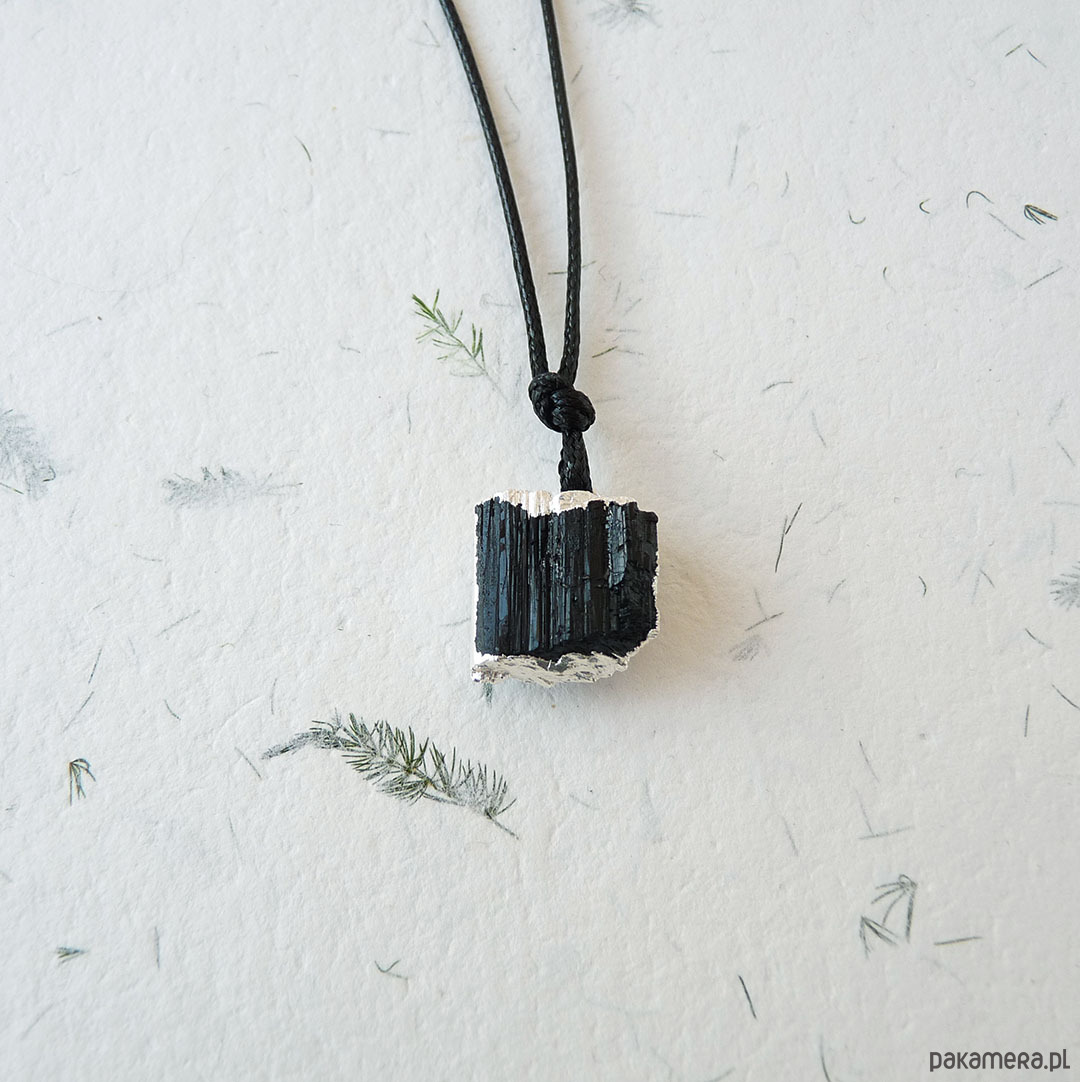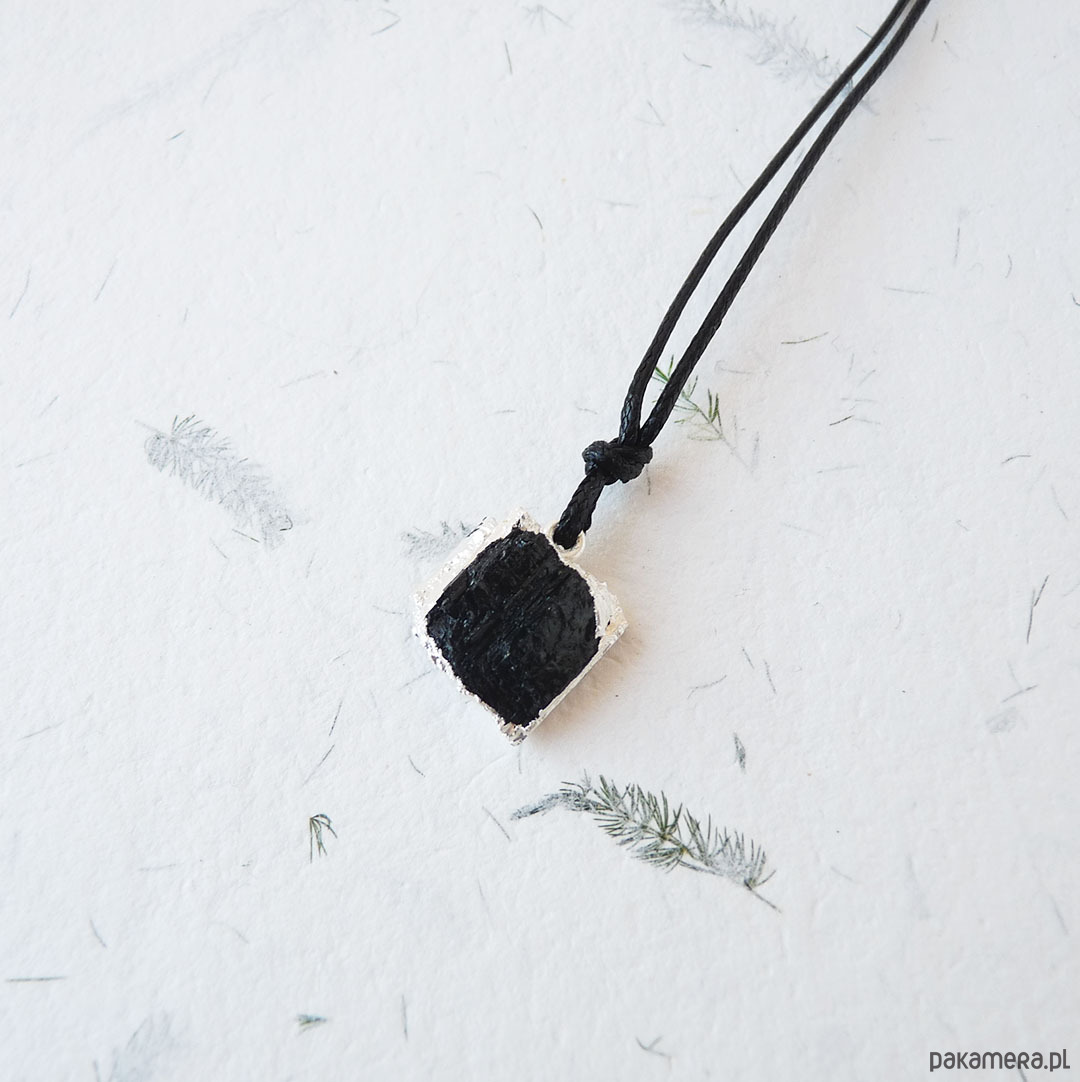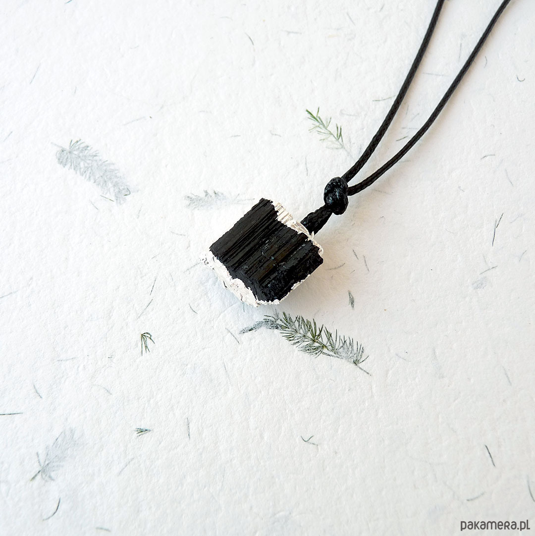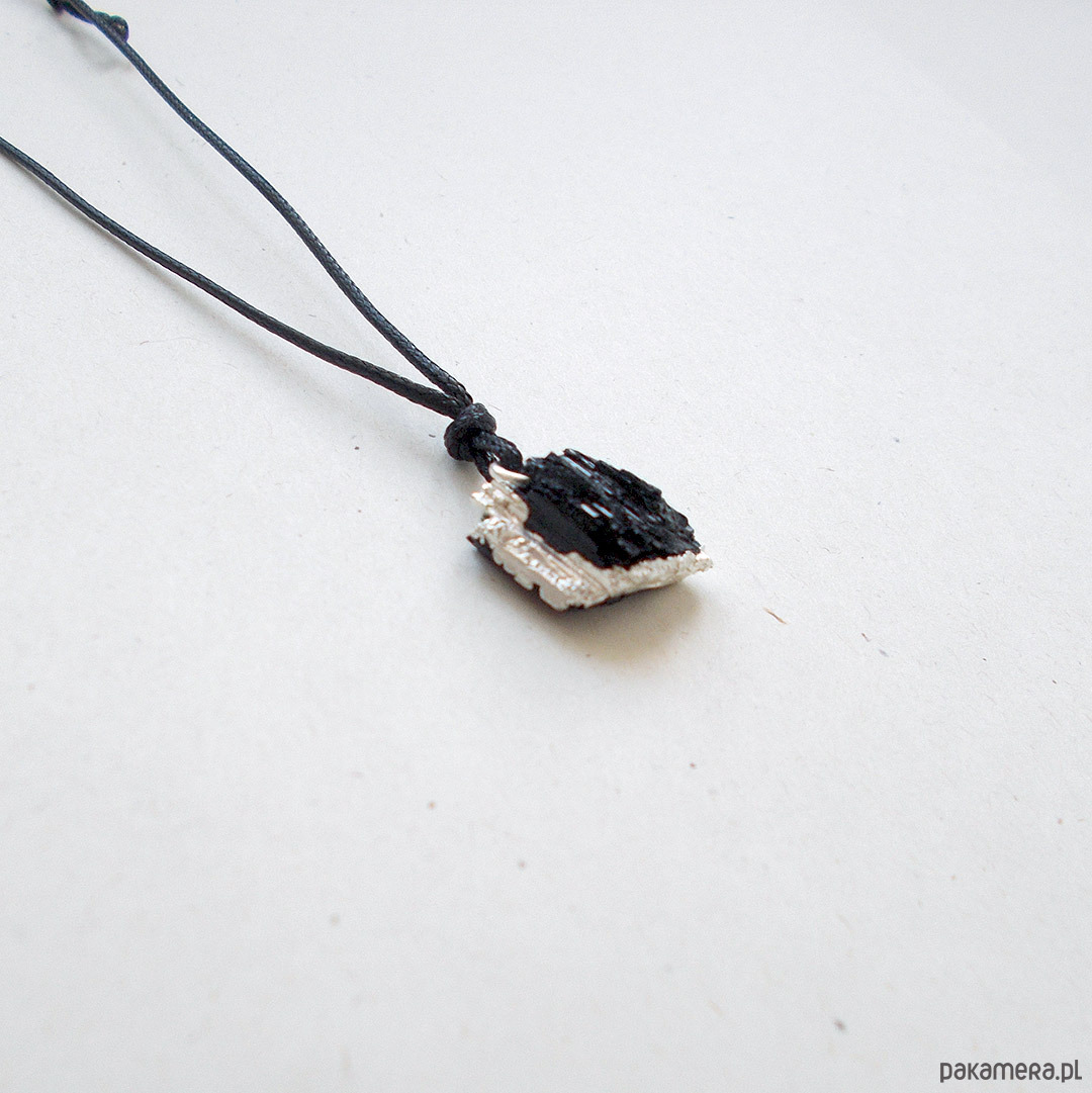 Wisiorek z czarnym, surowym turmalinem