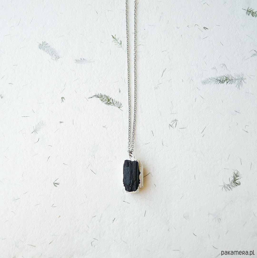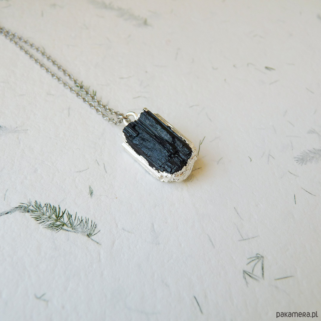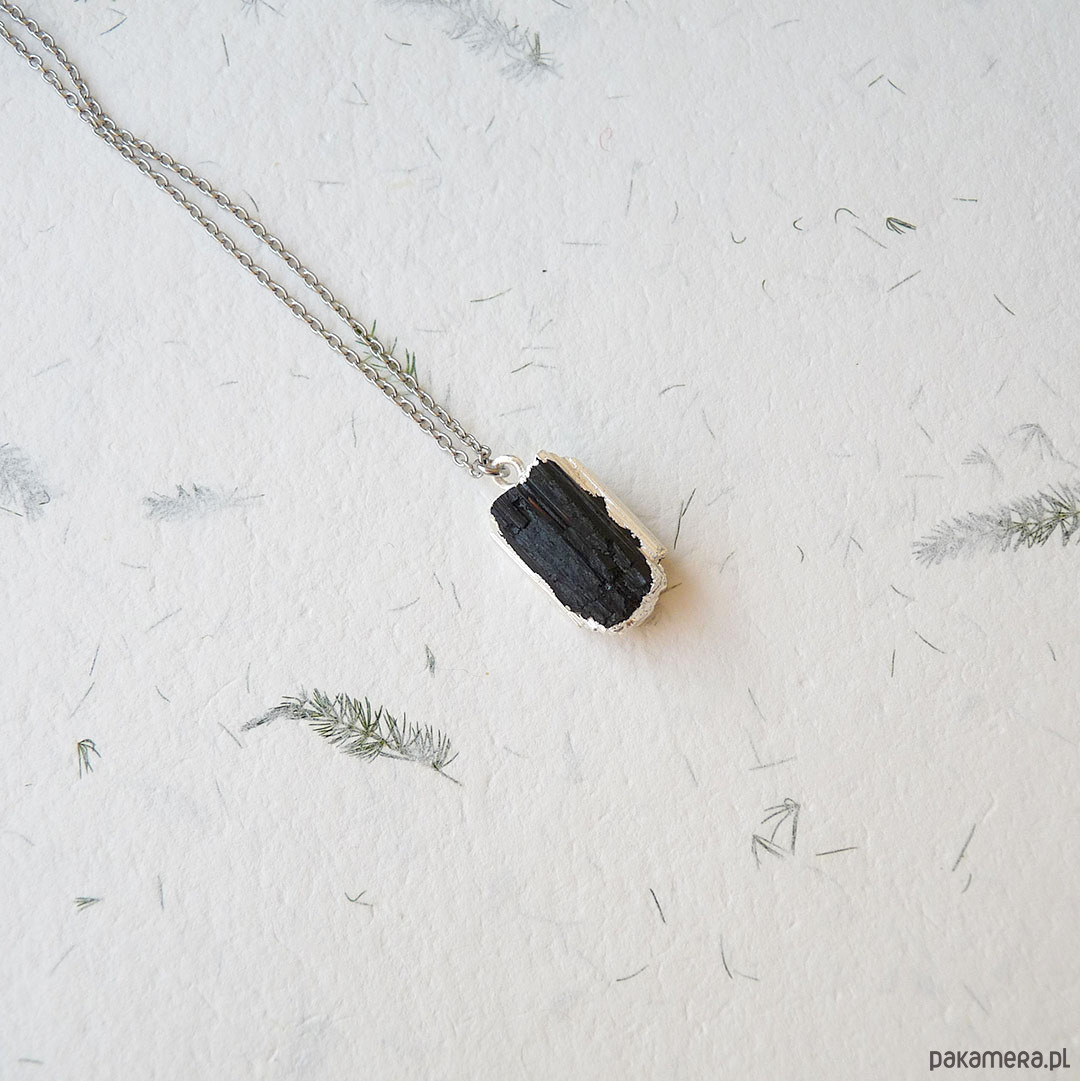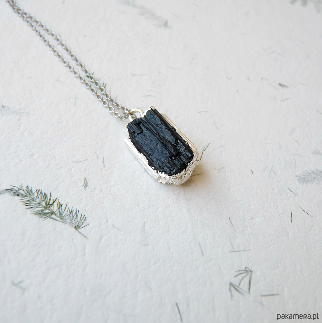 Unikalny wisiorek z czarnym, surowym turmalinem